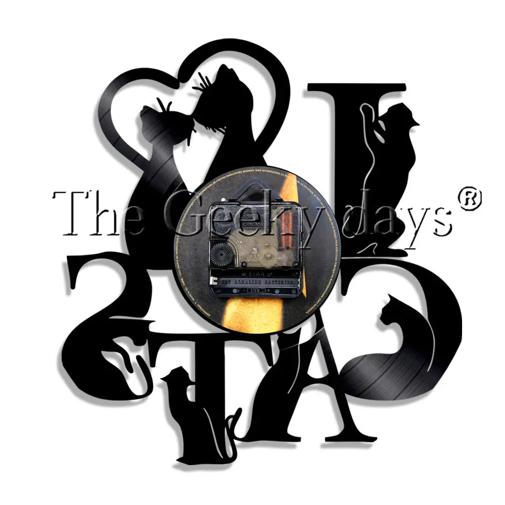 HOT OFFERS 1Piece I Love Cats Vinyl Record Wall Clock Modern Design Creative Pet Cat Animals Home Decor Watch For Lover G Discount Price BUY Now RECOMMENDED TODAY