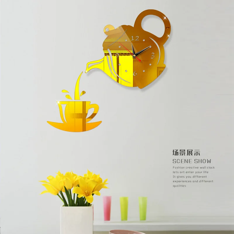 DISCOUNT definitely the Creative Acrylic 3D Wall Clock Coffee Cup Teapot Clock Decorative Kitchen Wall Clocks Living Room Dining Room Home Decor Clock RECOMMENDED TODAY