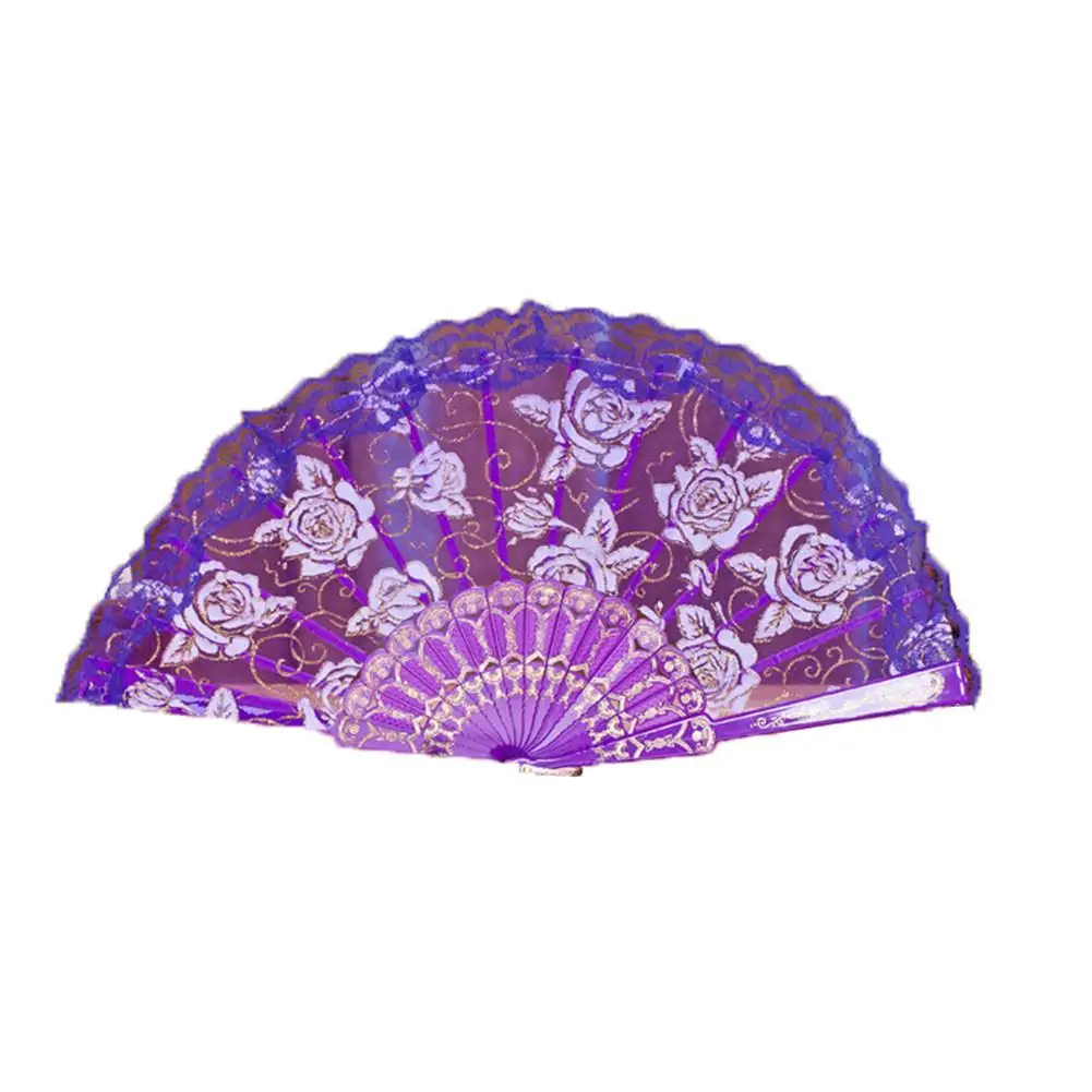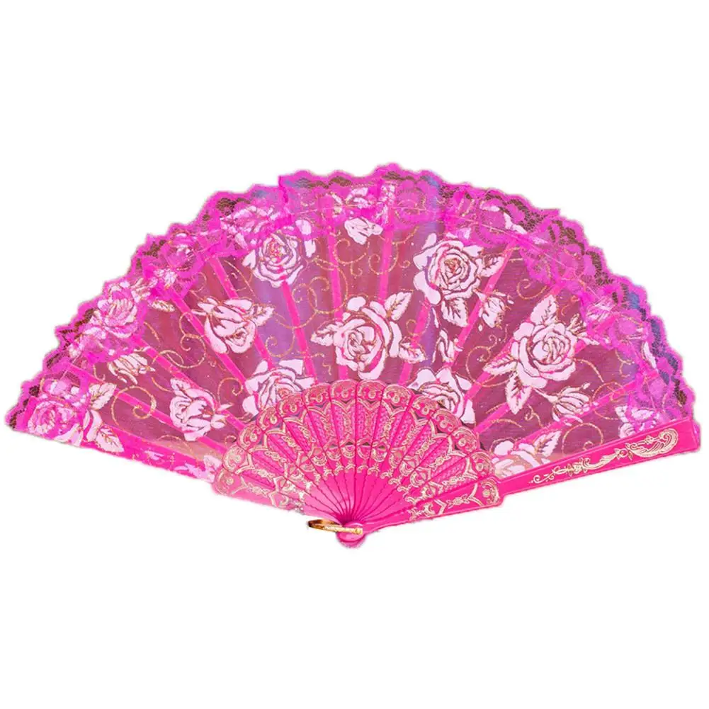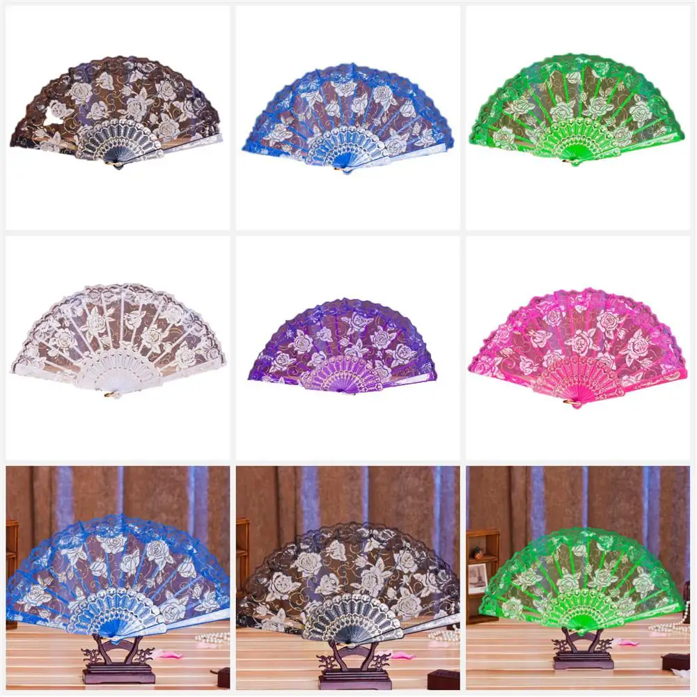 SPECIAL OFFERS Rose Lace Dance Folding Fan Handheld Flower Dancing Fan Chinese Wooden Fan Antiquity Bronzing Fan Wedding Decoration Gift one of the best