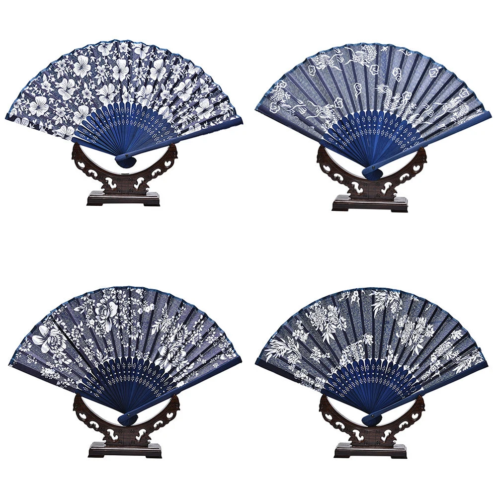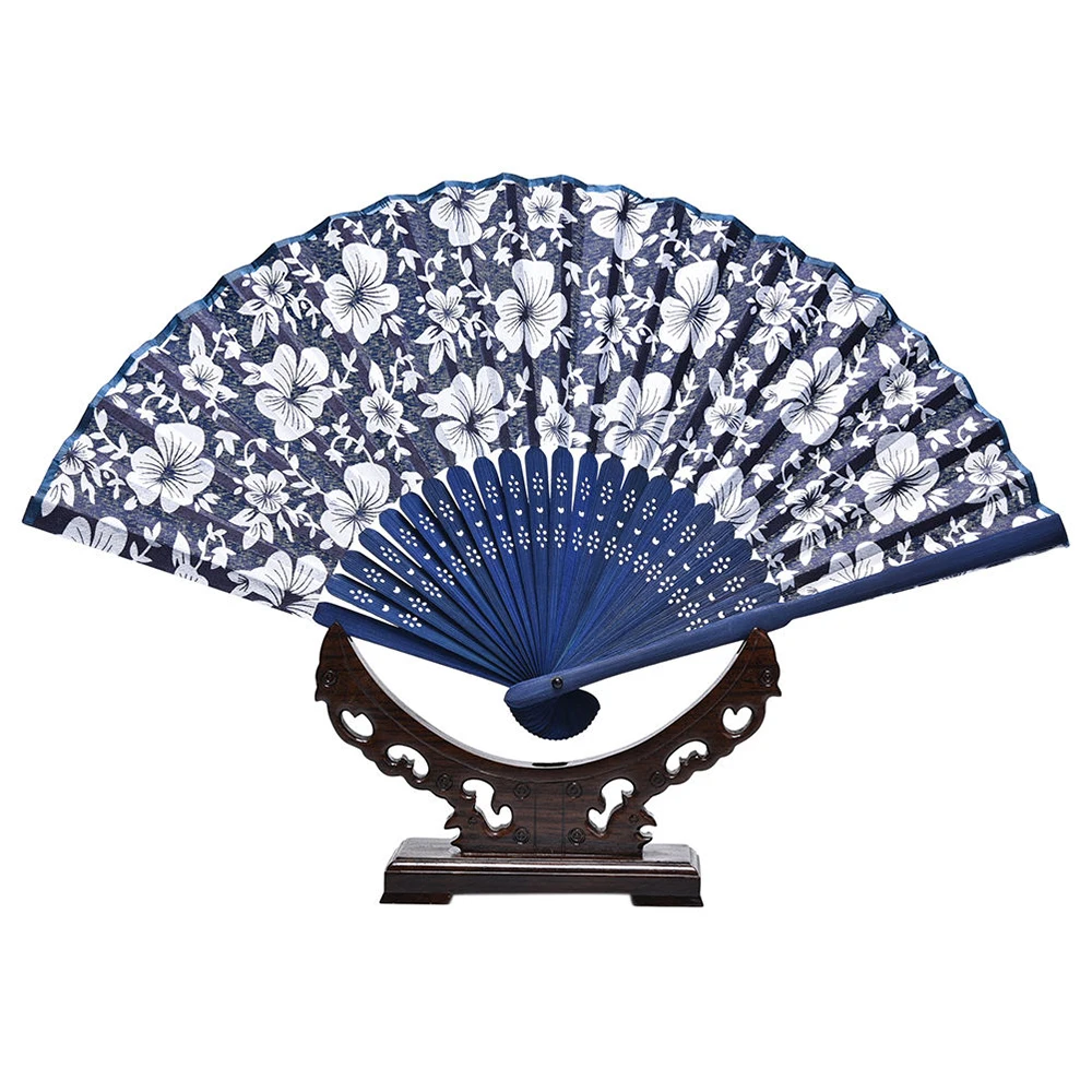 SPECIAL OFFERS 1Pc Chinese Style Blue Flower Decorative Folding Fan Ms. Dance Hot Stamping Craft Furnishing Fan Home Crafts Decoration Fans one of the best