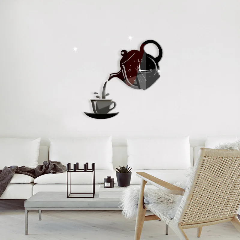 cheap Creative DIY Acrylic Coffee Cup Teapot 3D Wall Clock Decorative Kitchen Clocks Living Room Dining Home Decor 039 RECOMMENDED TODAY BUY Now TODAY
