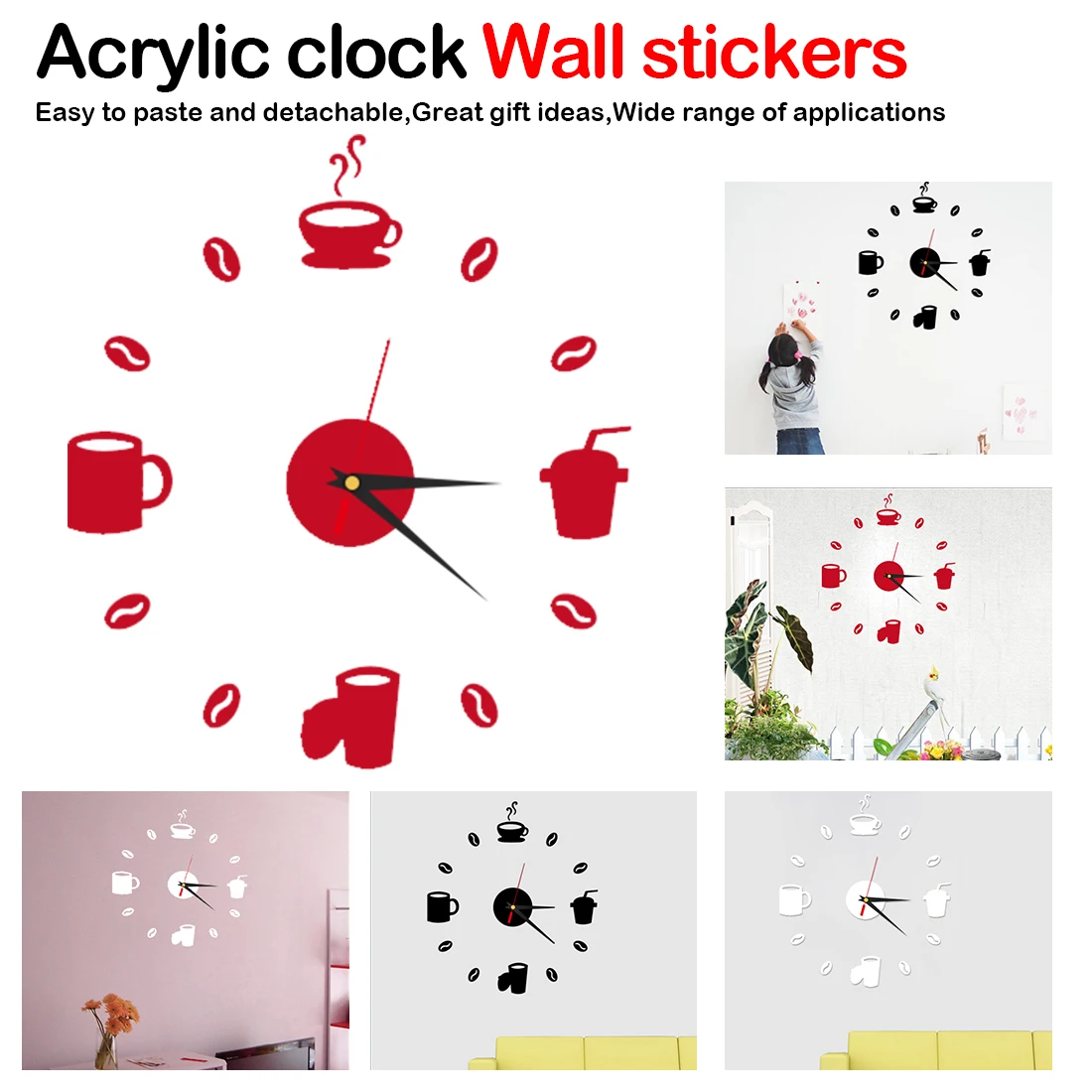 SPECIAL OFFERS Living Room Wall Sticker Acrylic DIY Sticker Coffee Cups Kitchen Wall Art Mirror Clock Modern Design Home Decoration Decor one of the best