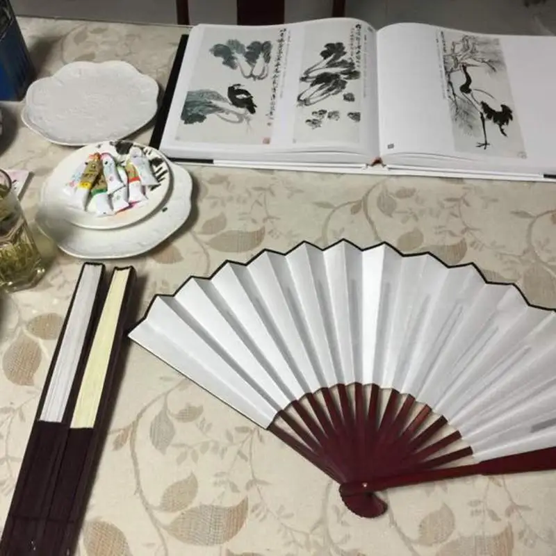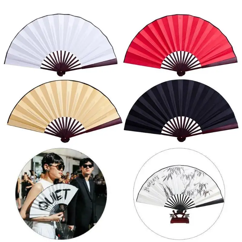 SPECIAL OFFERS 10 Inch Silk Cloth Blank Chinese Folding Fan Wooden Bamboo Retro Folding Fan For Calligraphy Painting one of the best
