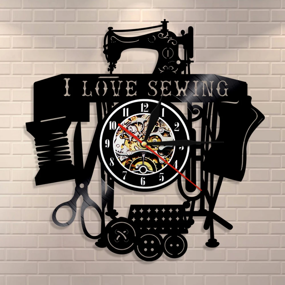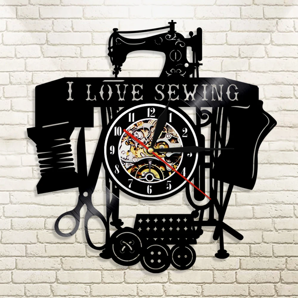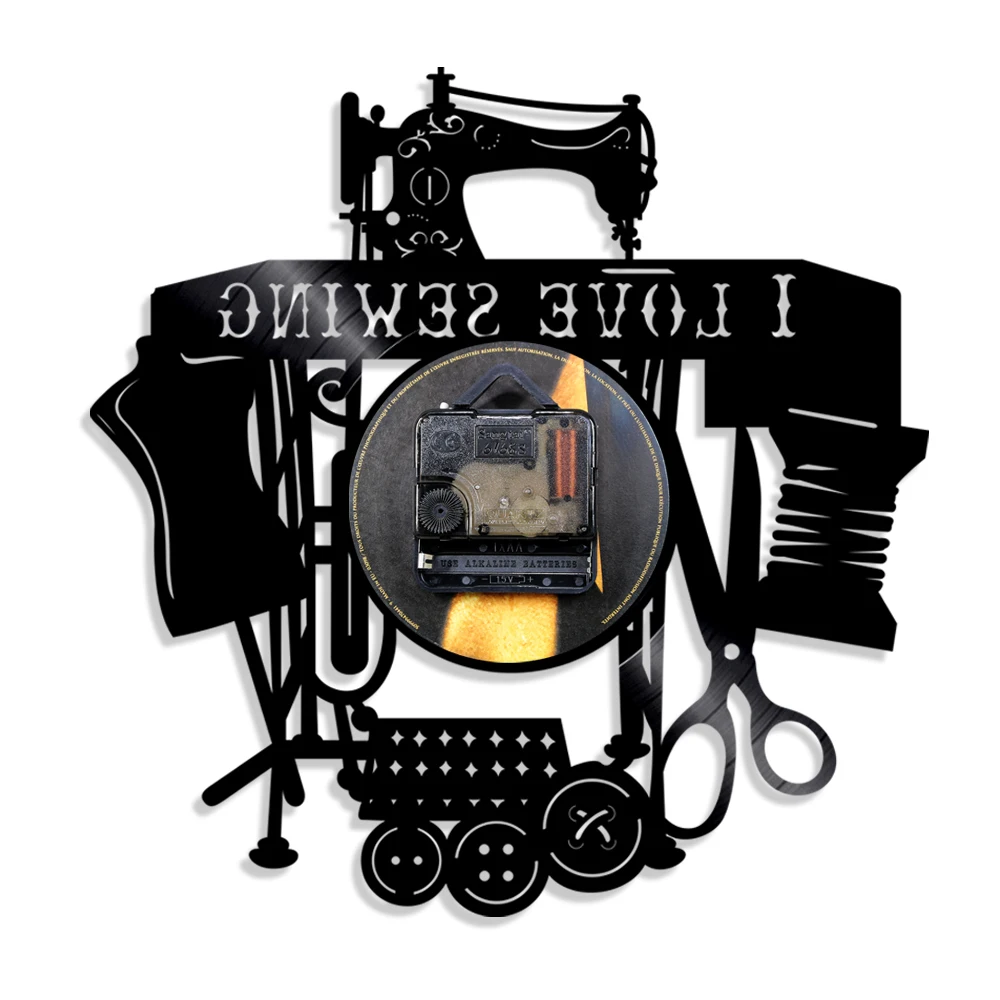 HOT OFFERS I Love Sewing Vintage Wall Clock Handmade Vinyl Record Watches Machine Art Decor For Room SPECIAL Price Buy PRICE Limited