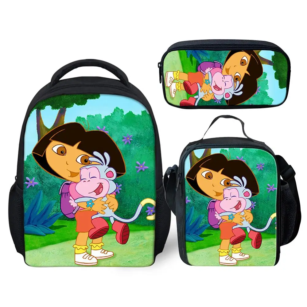 SPECIAL OFFERS 3Pcs School Bag Set for Baby Kid Cute Cartoon Dora the Explorers School Backpack Girl Bagpack Children 12 inch Bookbag Satchel Online
