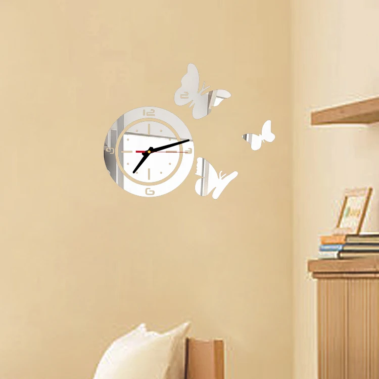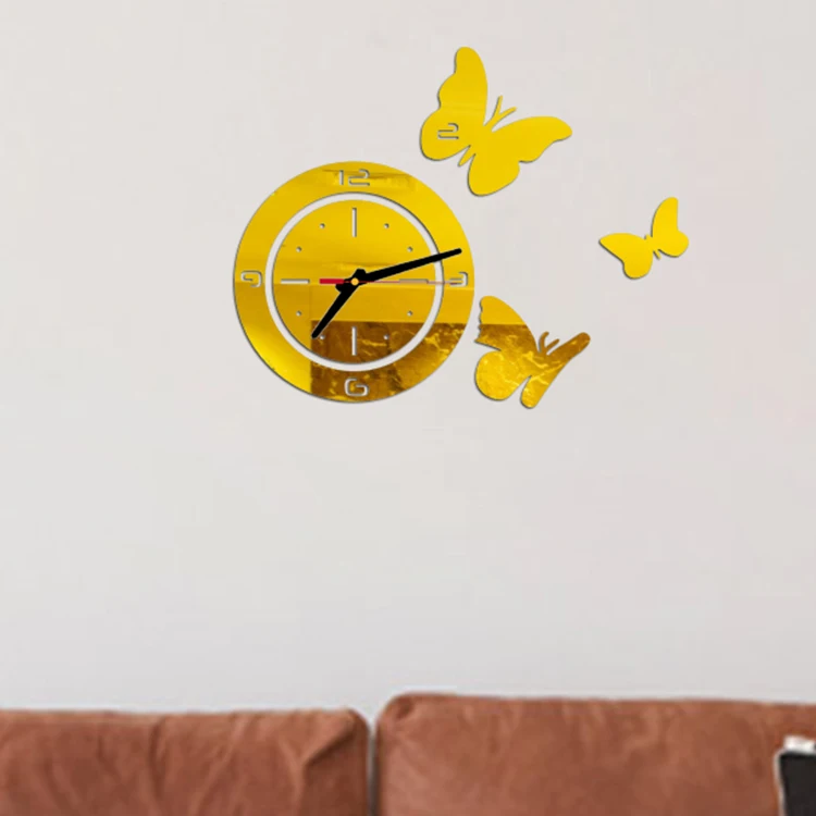 SPECIAL OFFERS New hot mirror sticker 3d acrylic wall clock home decor modern large poster kitchen animal butterfly Watches and clocks Online