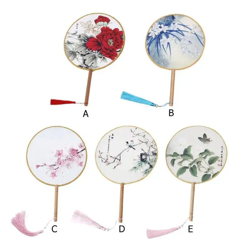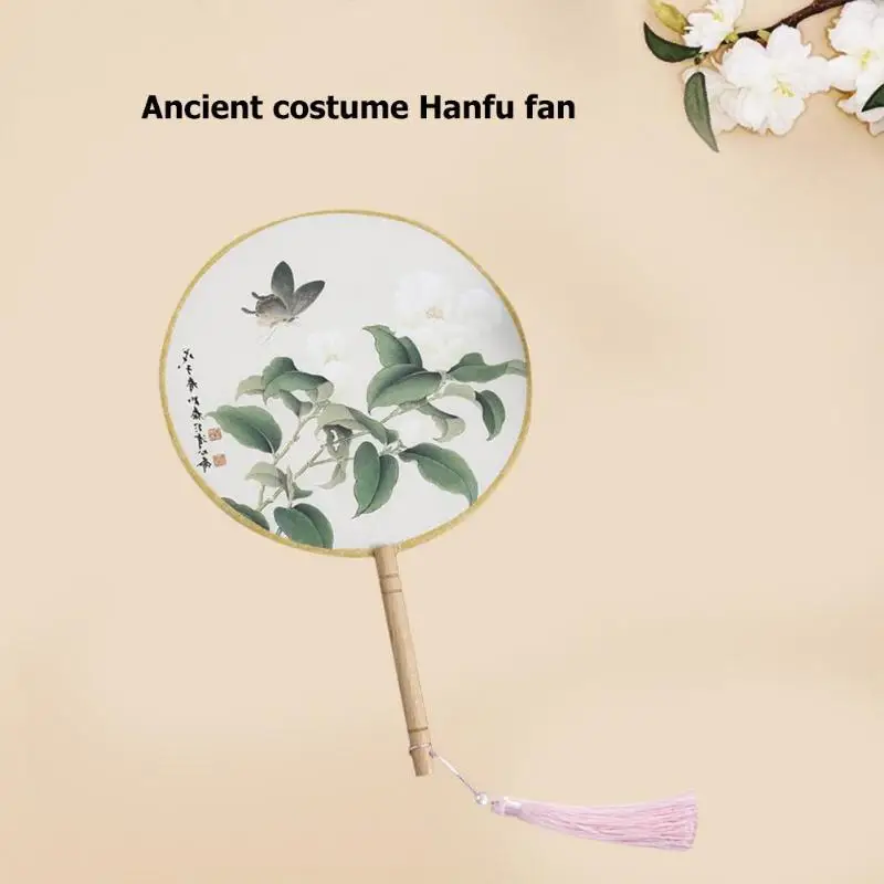 SPECIAL OFFERS 22*34 cm Chinese Traditional Fan Silk Flower Tassel Antique Dance Round Fan Art Gift New Hot Photography Travel Party Pattern one of the best