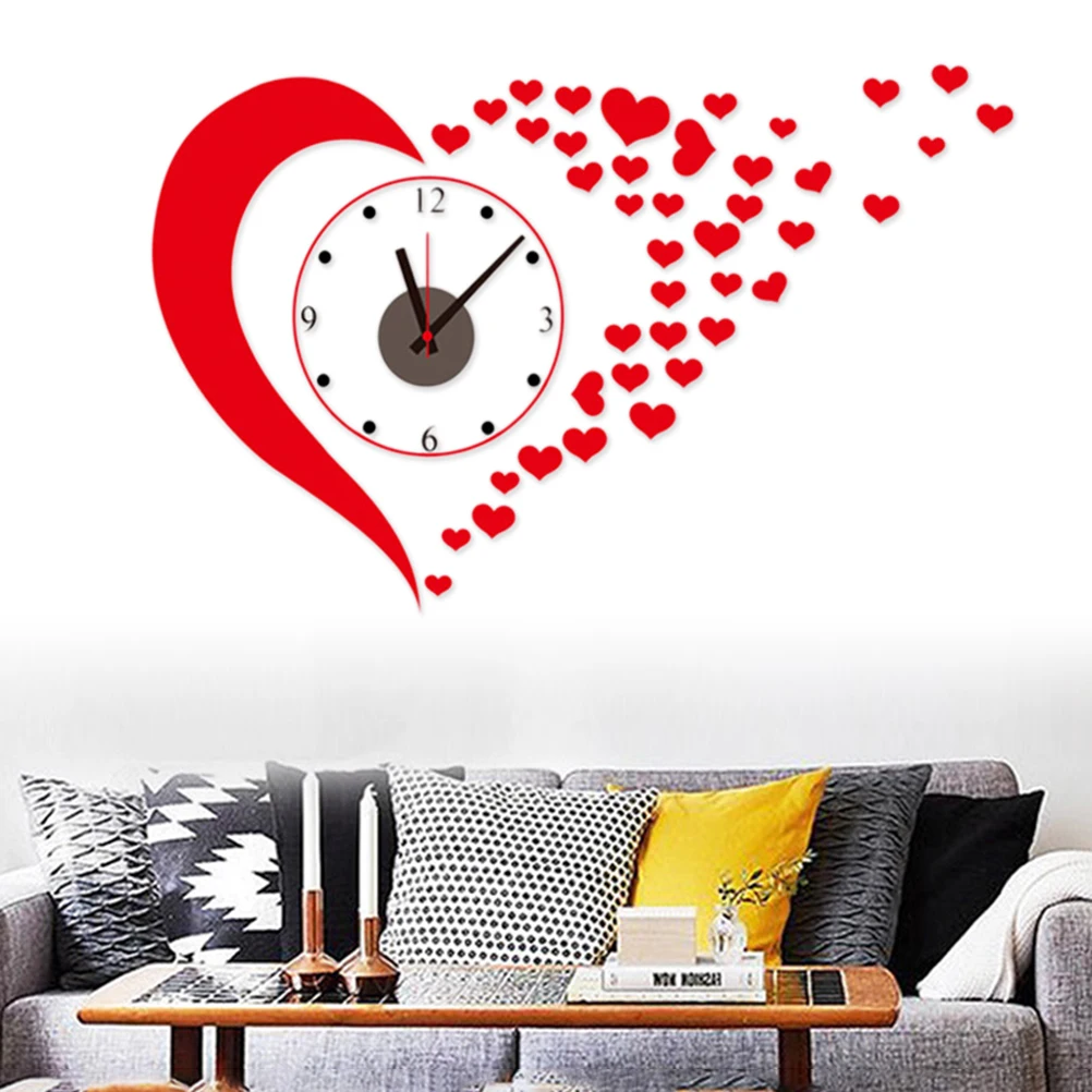 HOT OFFERS 1PC Wall Clocks Stickers Love Heart Self Adhesive Bell PVC Home Decoration For Wedding Living Room HOT PRODUCT TODAY Online HOT SPECIAL PRICE Limited