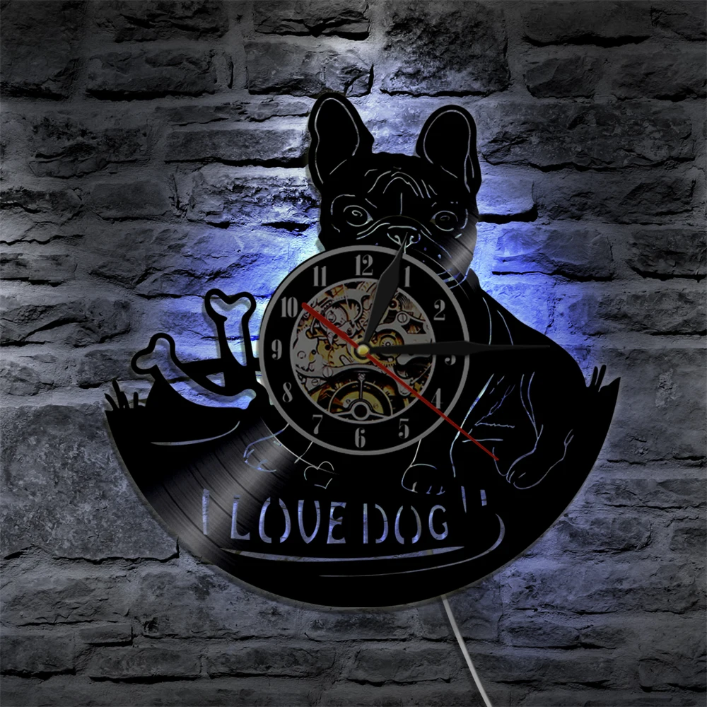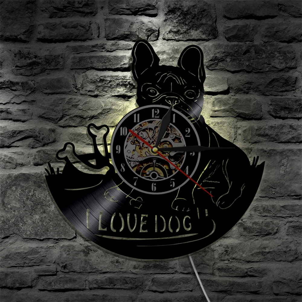 SPECIAL OFFERS BUY Now 1Piece I Love Dog LED Backlight Vinyl Record Wall Clock French Bulldog Modern Watch Pet Puppy Animal Decorative Lighting RECOMMENDED TODAY
