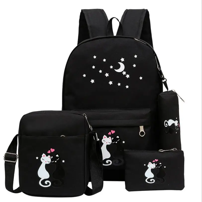 Dear definitely the 4pcs set Women Backpack Cat Printing Canvas School Bags For Teenager Girls Preppy Style Rucksack Cute Book Bag Mochila Feminina RECOMMENDED TODAY
