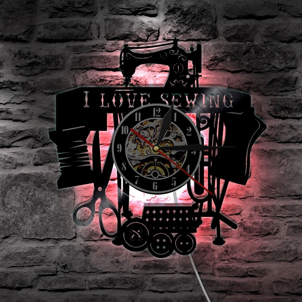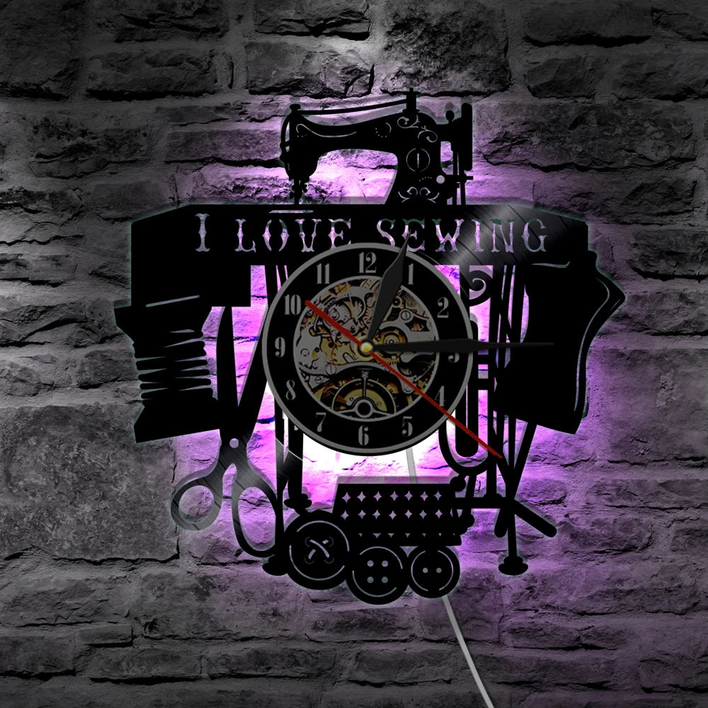 Best Sewing Lover LED Lighting Wall Lamp Shop Backlight Machine Design Modern Vinyl Record Clock Home Decor RECOMMENDED TODAY Cheap SPECIAL PRICE Limited