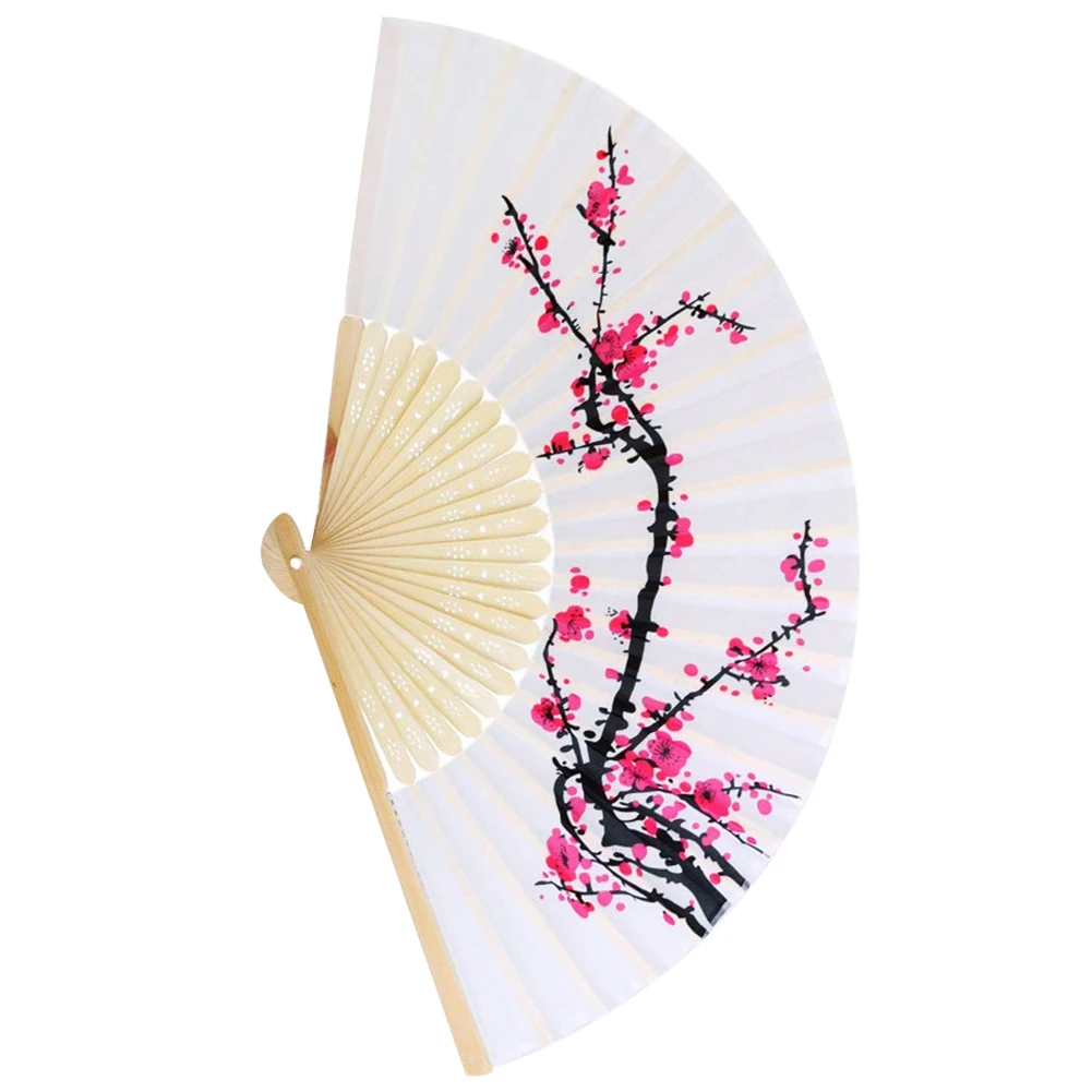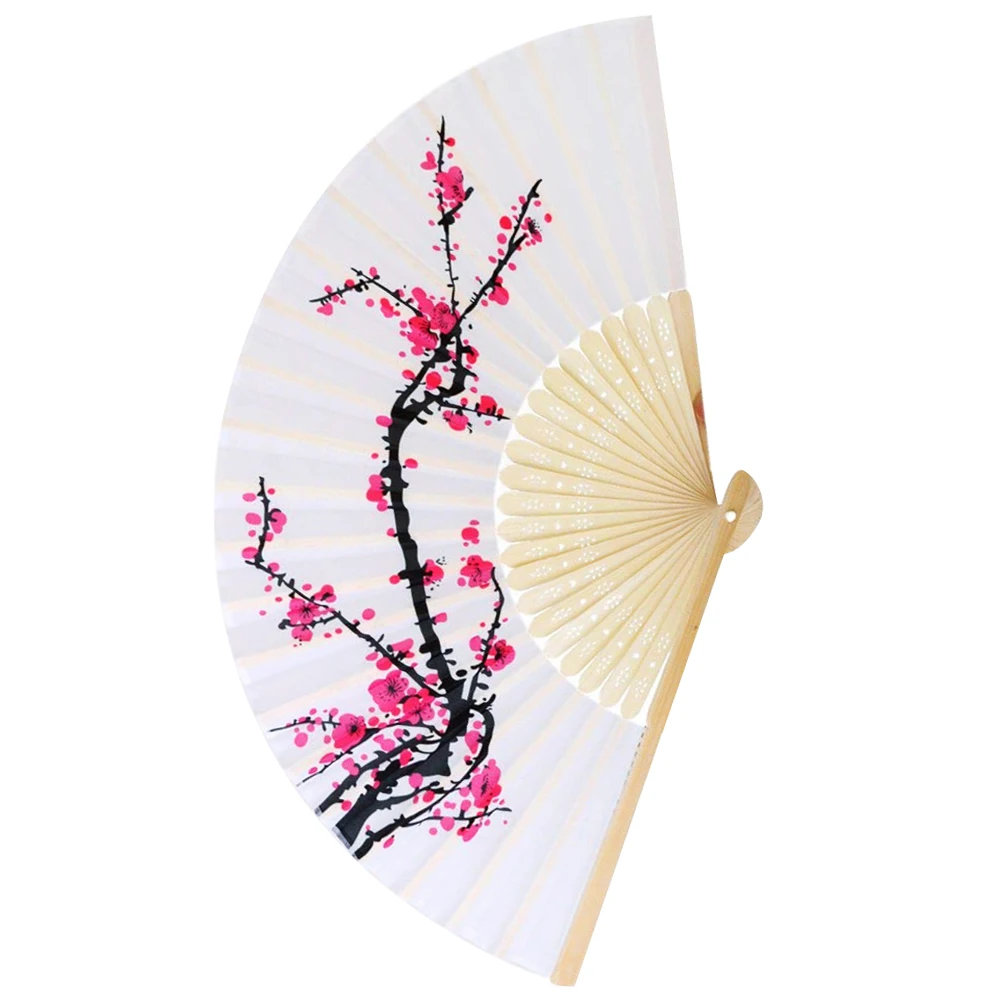 SPECIAL OFFERS Classic Chinese Style Folding Fan Lace Silk Fabric Bamboo Frame Folding Plum Hand Held Flower Wind Fans Pocket Gifts Wedding one of the best