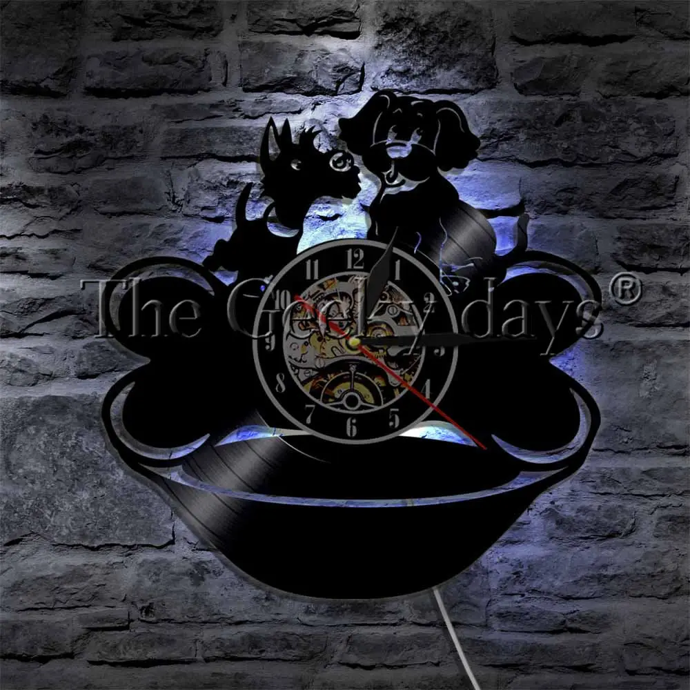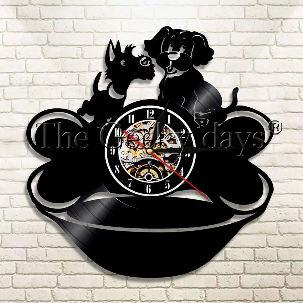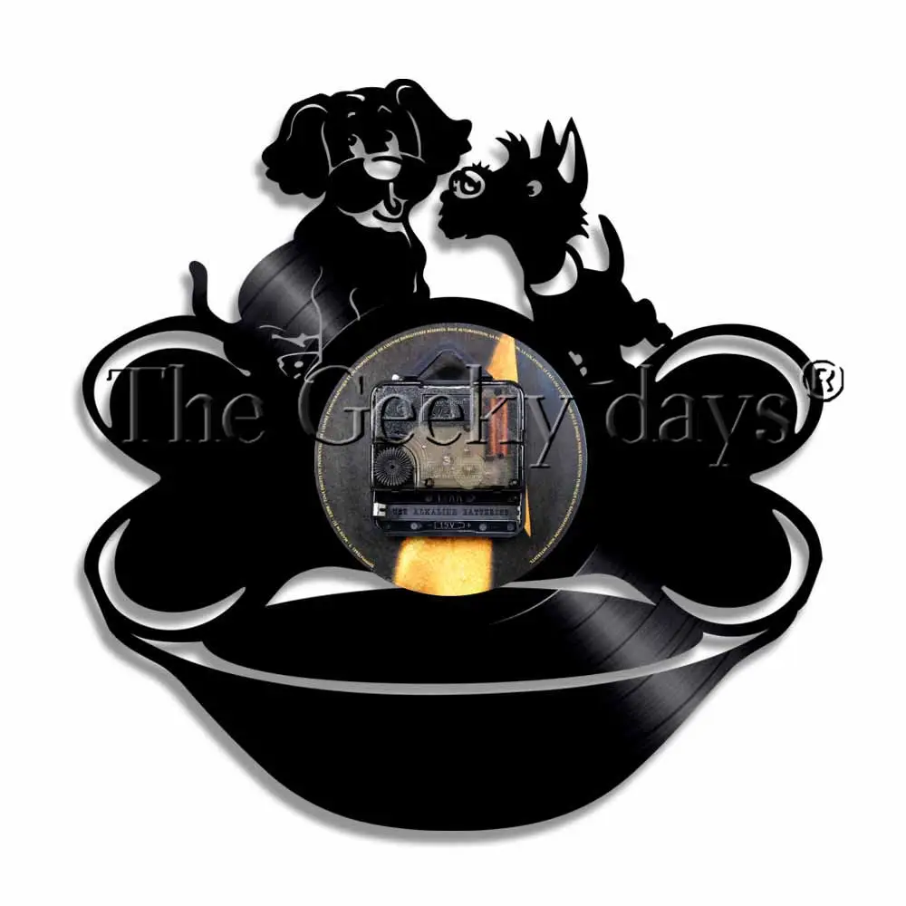 DISCOUNT definitely the 1Piece Lovely Dog Couple Vinyl Record Wall Clock Animals Modern Design Puppy Vintage Wall Watch Handmade Gift For Dog Lover RECOMMENDED TODAY