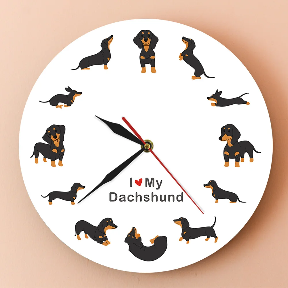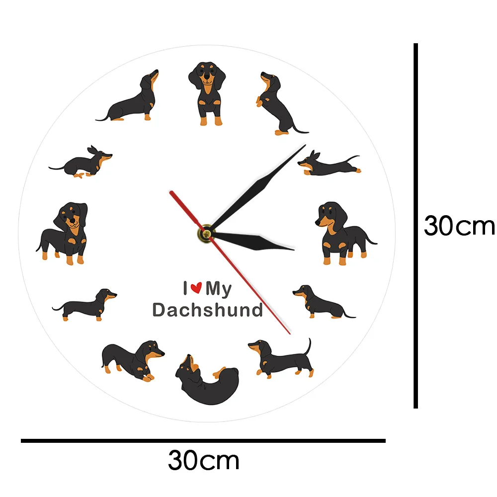 SPECIAL OFFERS Cute Doxie Cartoon Style Dachshund Wall Clock Dog Breed Timepiece Sausage Dog Modern Wall Watch With Saying I Love Dachshund Online