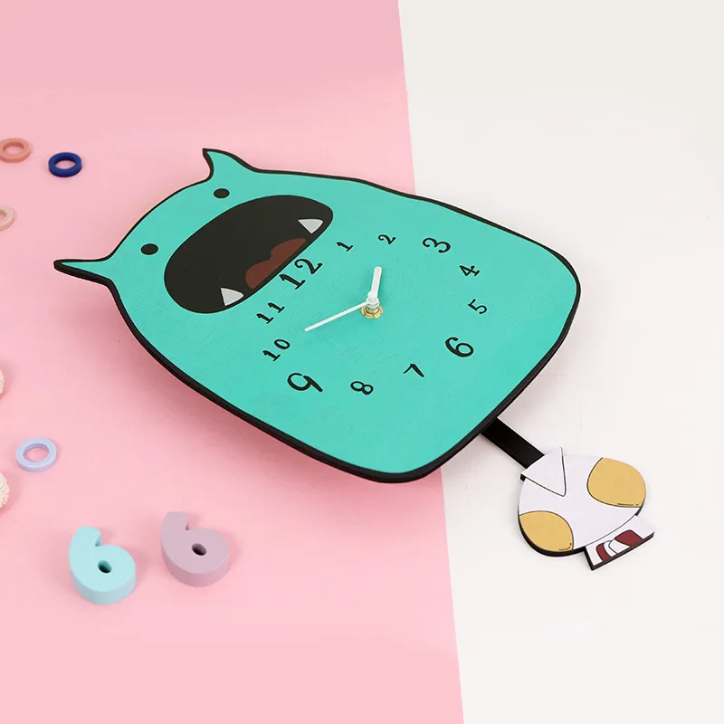 SPECIAL OFFERS Cartoon Wall Clock Kids Room Decoration Lovely monster Swing Wall Clock Wall Art Home Decor Beautiful Gift for Children one of the best