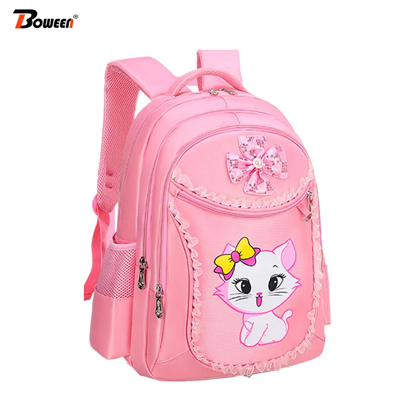 Dear definitely the Kids School Bags for Girls Primary School Backpack Child Nylon Waterproof Children Schoolbag Cat Printing Princess Bookbags Pink RECOMMENDED TODAY