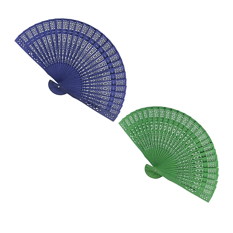 SPECIAL OFFERS HOT OFFERS BUY 2 Pcs 8 Inch Chinese Japanese Folding Fan Wooden Hand Flower Bamboo Pocket For Home Decor Party Decoration, Blue amp; Green Limited