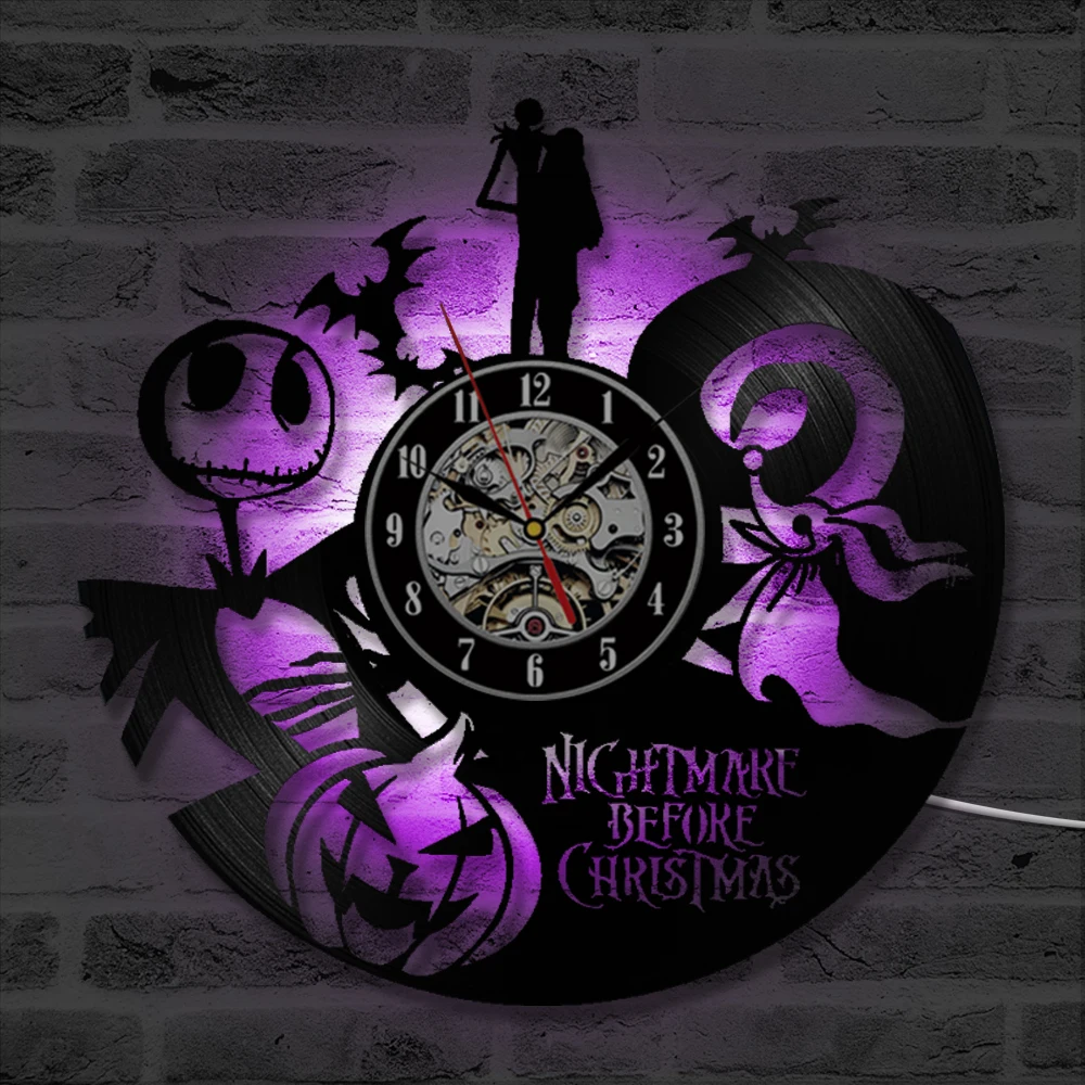 DISCOUNT definitely the The Nightmare Before Christmas Cartoon Them CD Record Wall Clock Love Story Vinyl LED Wall Clock Classic Home Decor Clock RECOMMENDED TODAY