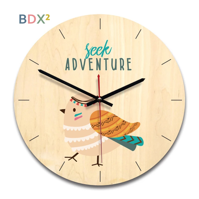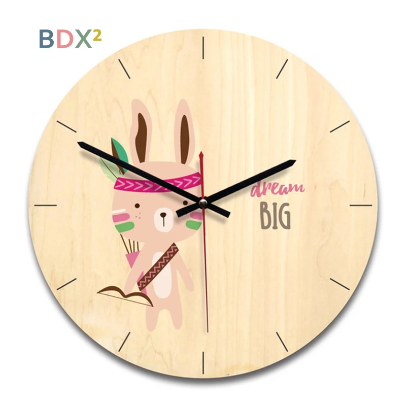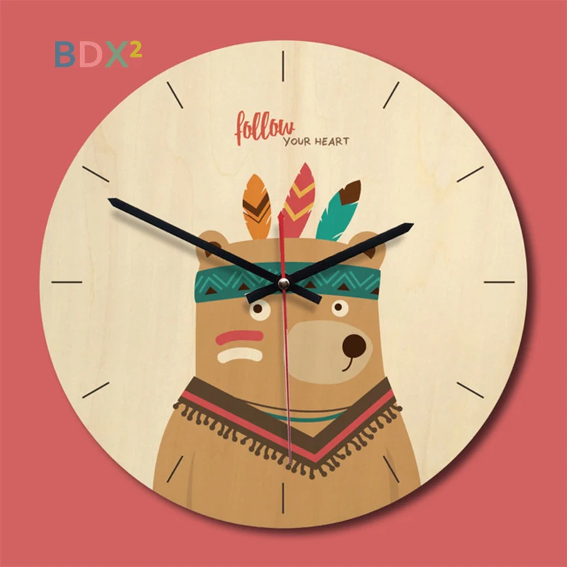 cheap Lovely Animal Wooden Decoration Wall Clock UV Print Household Decorative Quiet Lion Fox RECOMMENDED TODAY BUY Now TODAY