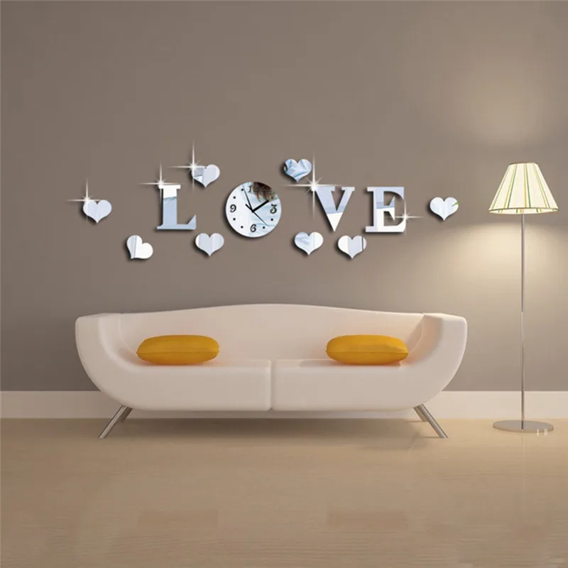 DISCOUNT my personal favorite Creative LOVE Letter Decal Acrylic Mirror Wall Stickers Home Decoration Wall Clock with Movement For Living Room Decor RECOMMENDED TODAY