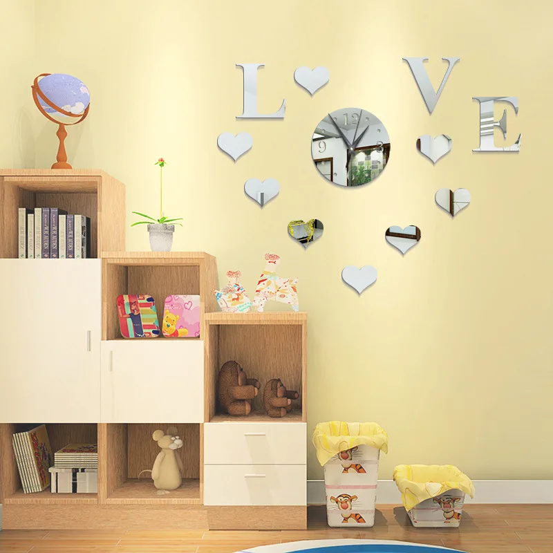 SPECIAL OFFERS DIY Creative Personality Love Background Mirror Wall Stickers Wall Clock Sweep Clock Clock Crystal Wall Stickers one of the best
