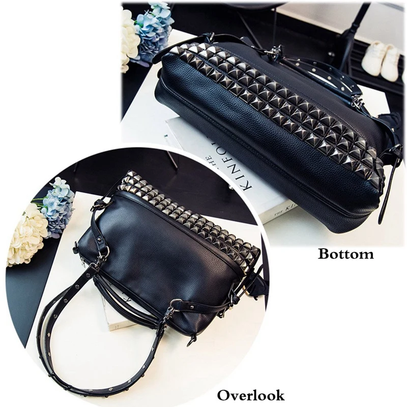 DISCOUNT my personal favorite Women Modern Punk Pu Leather Cross Body Rivet Top Handle Shoulder Bags Hobo Tote Satchel Handbags For Lady RECOMMENDED TODAY