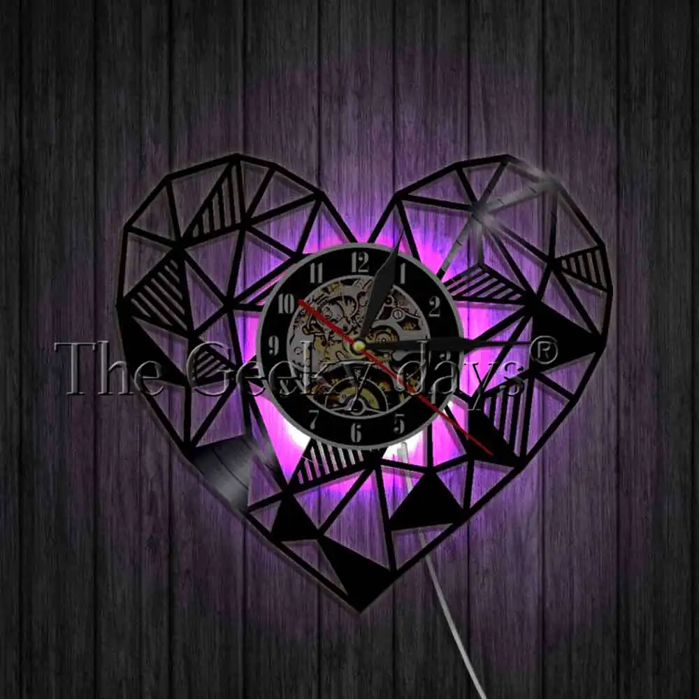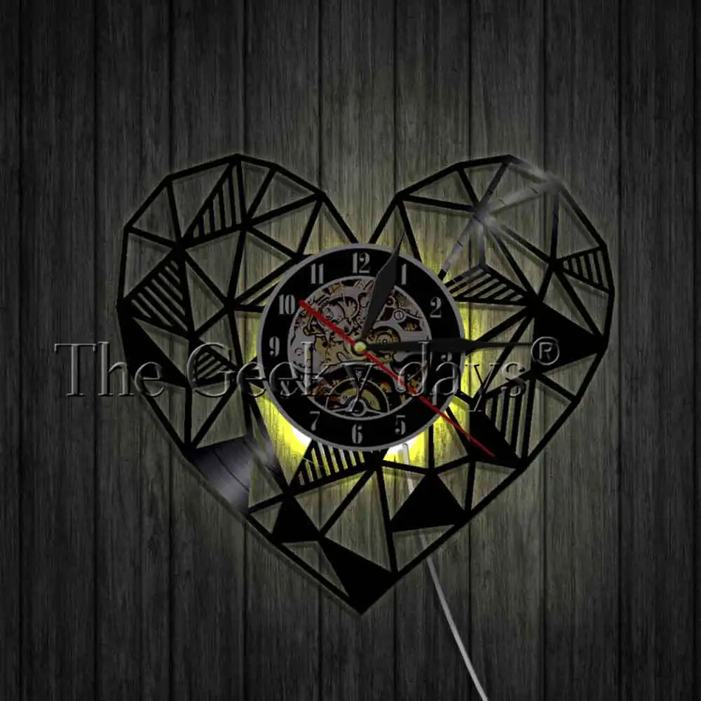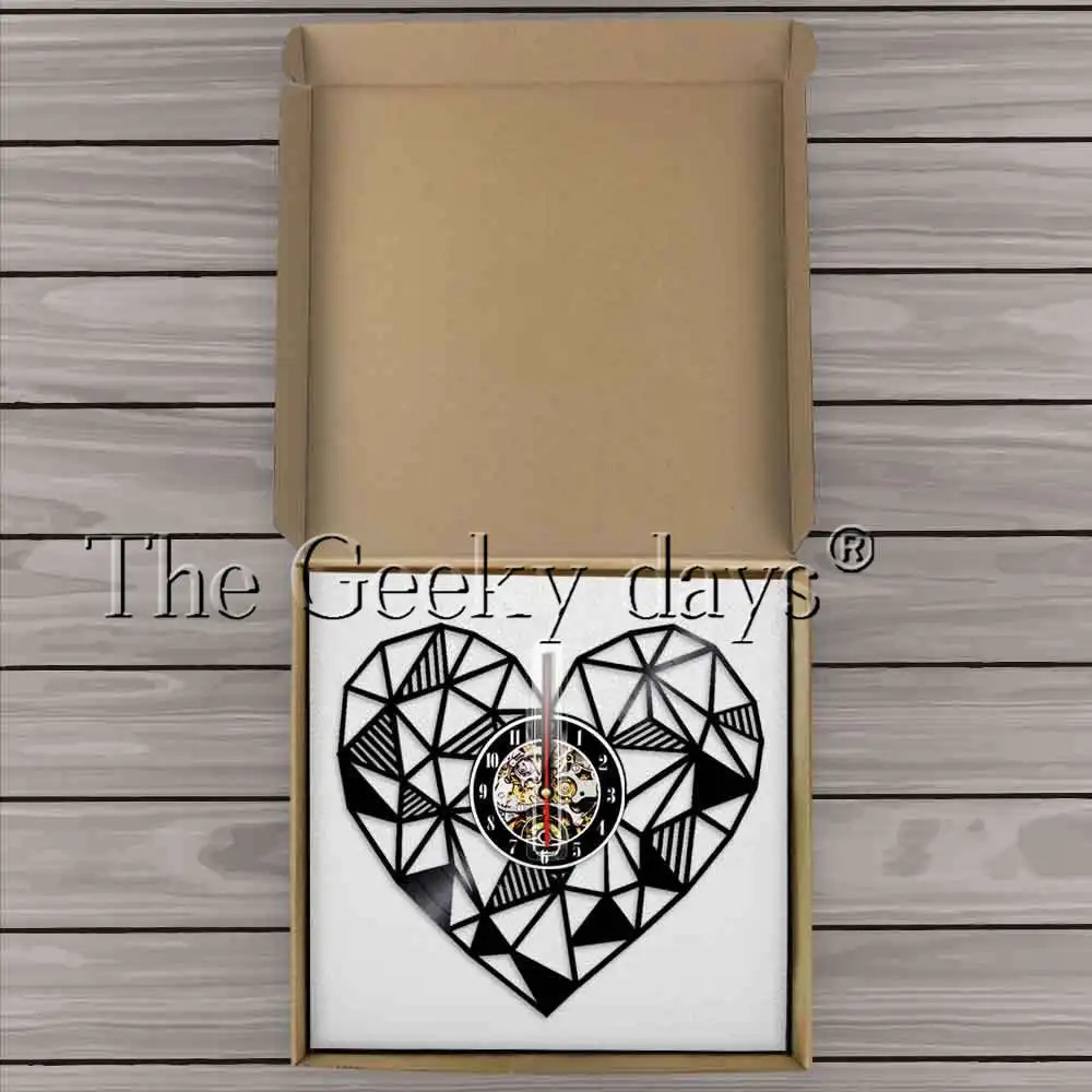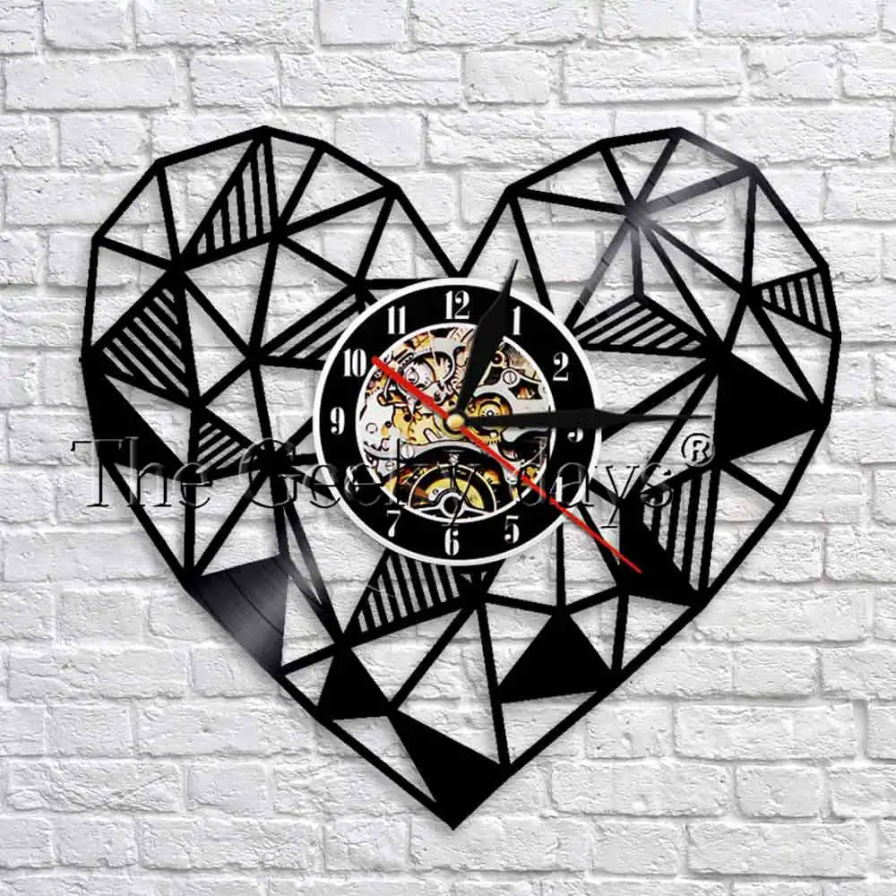 SPECIAL OFFERS Geometric Love Heart Art Wall Clock Vinyl Record Clock Handmade Modern Minimalist Home Decor Unique Valentines Day Gift one of the best