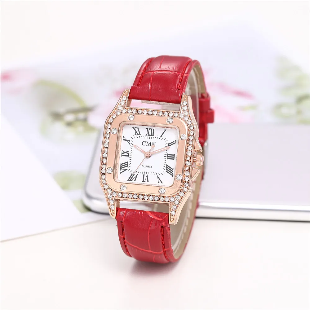 DISCOUNT definitely the Fashion Square Ladies Watches Roman Numerals Rhinestone Dial Women Watch Reloj hombre Leather Casual Quartz Clock Kol Saati #W RECOMMENDED TODAY