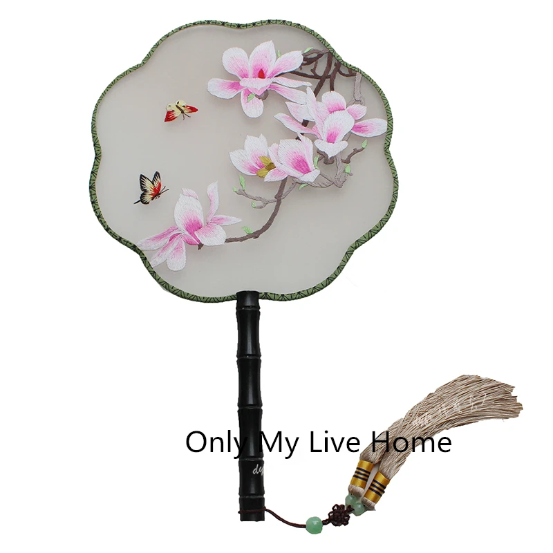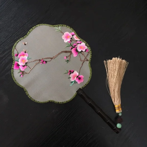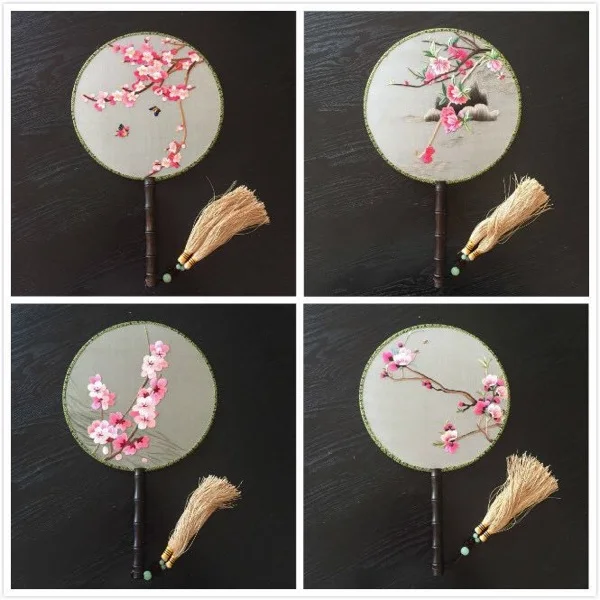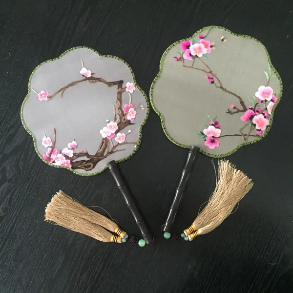 Best Cherry Blossom Natural Silk Fabric Fan Traditional Handmade Double Embroider Chinese Ebony Handle Wedding Decoration RECOMMENDED TODAY BUY Now TODAY