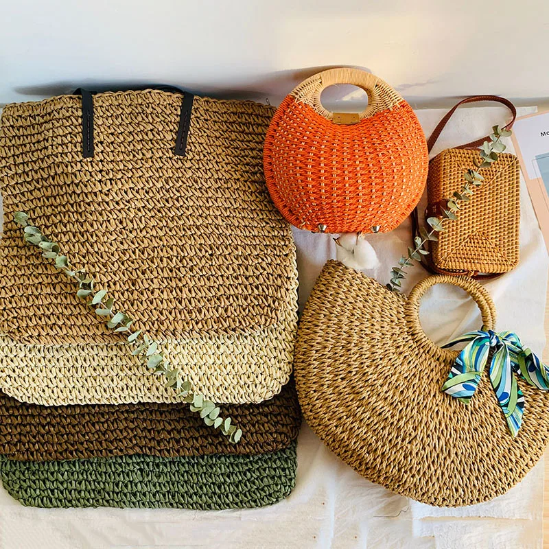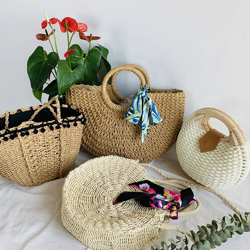 Best Round Straw Bag Woven Rattan Ladies Bags Travel Small Beach Handbags Women Summer Hollow Handmade Beachbag Shoulder RECOMMENDED TODAY Cheap SPECIAL PRICE Limited