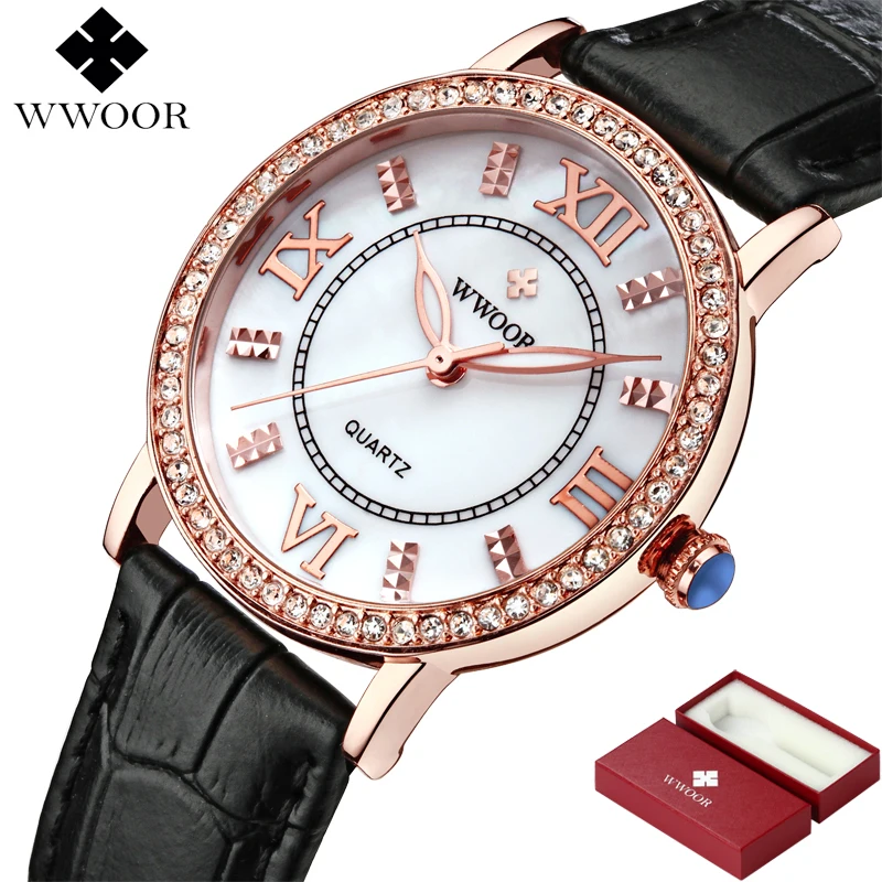 DISCOUNT definitely the Brand Luxury Women Watches Red Leather Rhinestones Dress Casual Rose Gold Women Quartz Wrist Watch Ladies Clock Relogio Feminino RECOMMENDED TODAY