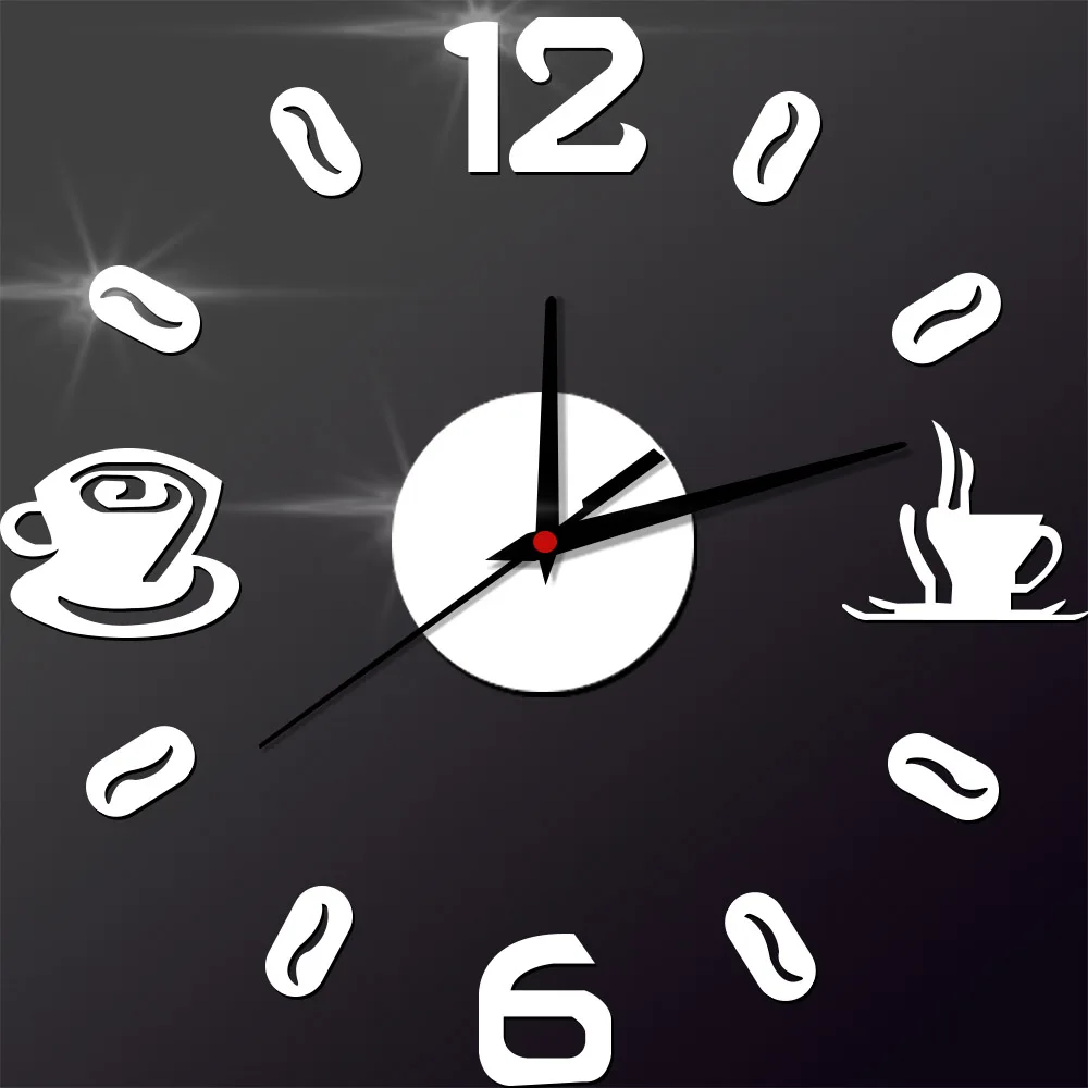 HOT OFFERS DIY Digital Number Coffee Cup Acrylic Clock Self adhesive Mirror Sticker Wall Quartz Non ticking Kitchen Home Decoration Promo Online HOT BUY Limited