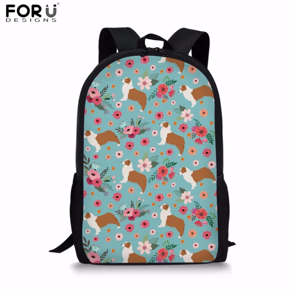 SPECIAL OFFERS FORUDESIGNS School Bags for Teenager Cute Australian Shepard Flower Printing Schoolbag Girls Kawaii Dog Shoulder Backpack Bolsa Online