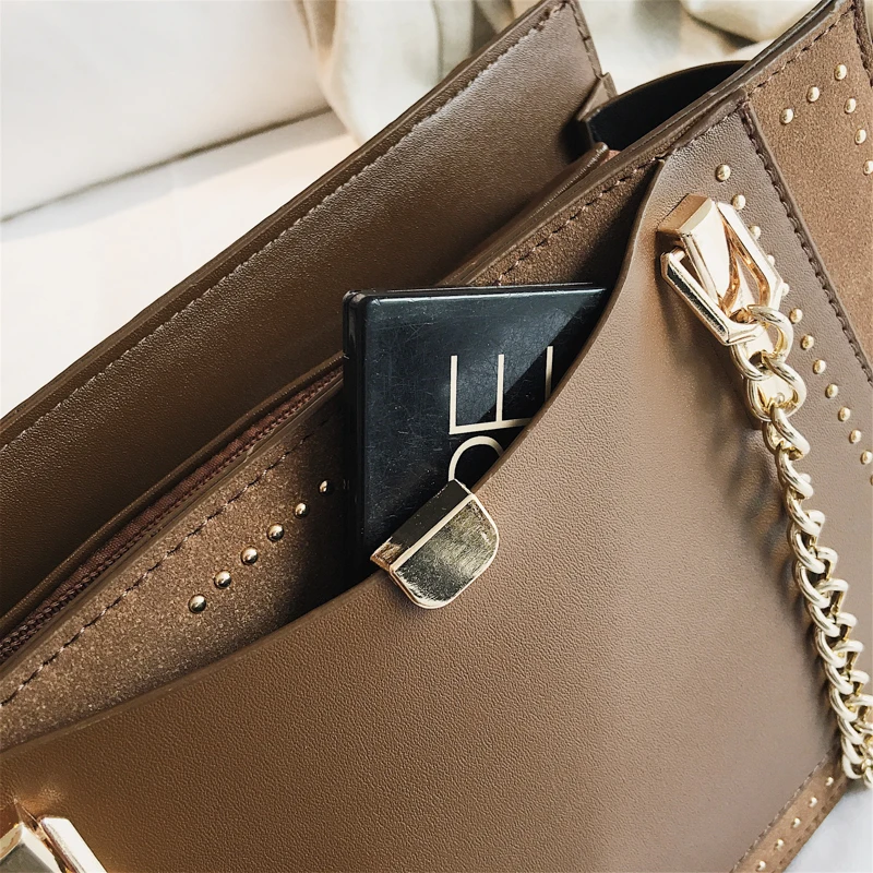 Dear definitely the Luxury Rivet Handbag Women Bag Designer Brand Metal Chain Tote Bags Casual PU Leather Crossbody Bag RECOMMENDED TODAY
