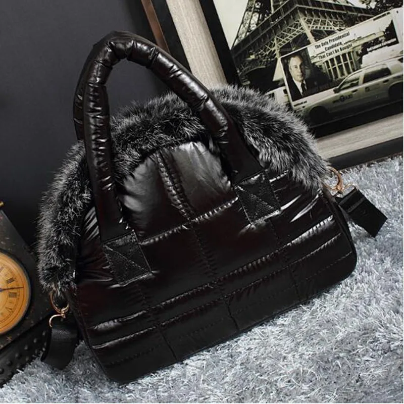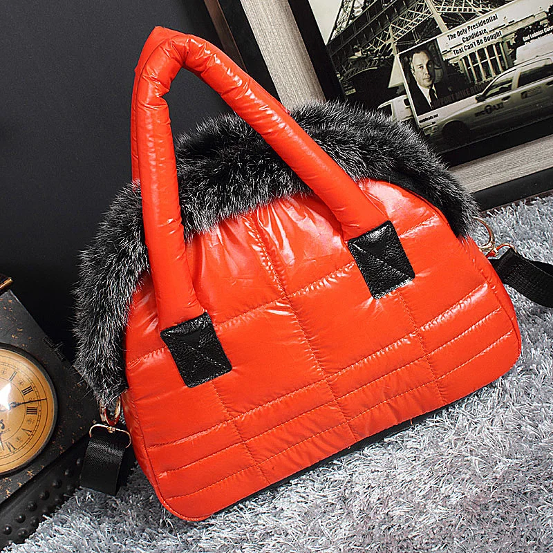 Dear definitely the 2019 New Winter100 %Rabbit Fur Warm Women Tote Bag Feather Padding Female Shoulder Bag Space Cotton Crossbody Bag Bolsa Feminina RECOMMENDED TODAY