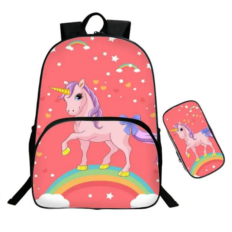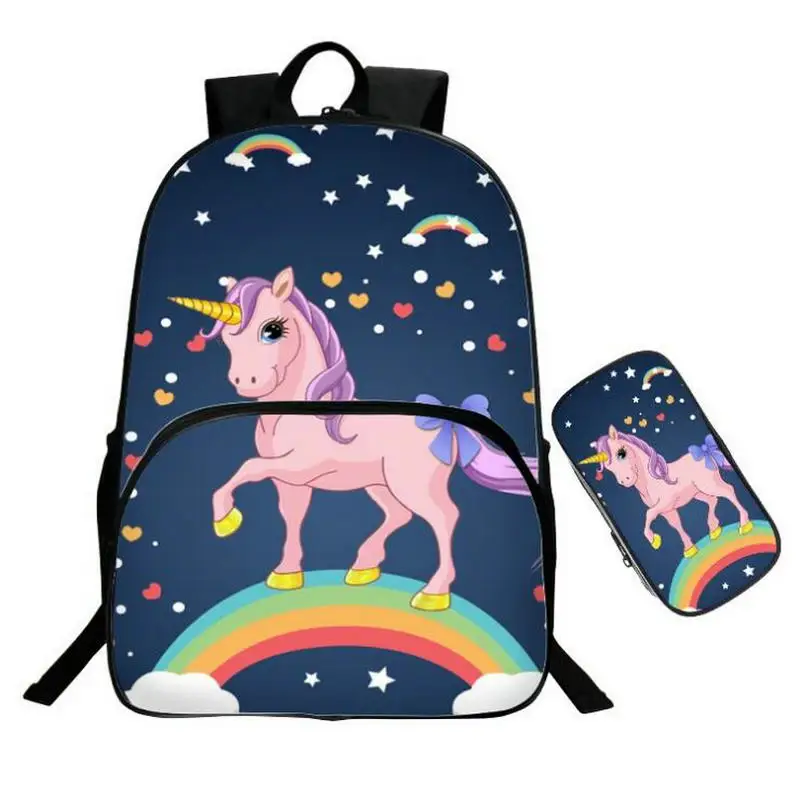 SPECIAL OFFERS Fashion Set girl unicorn school bag Kid Backpack Zipper Backpacks School Bag Teenager Girls Book pencil bags Unicorns 16 Inch Online