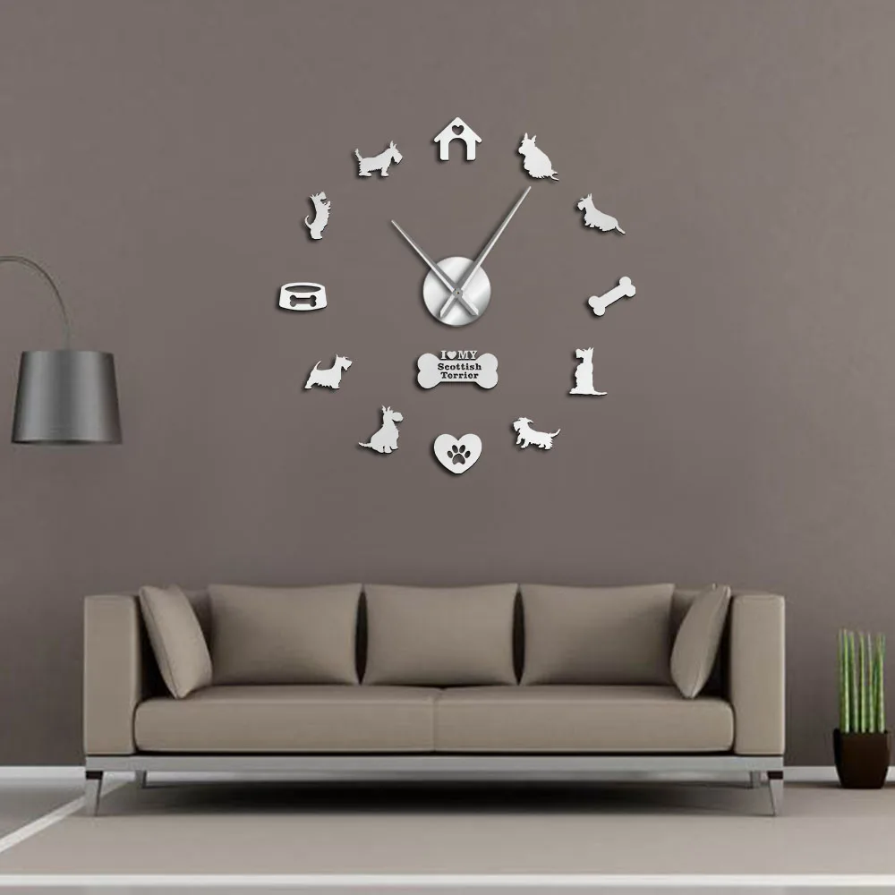 SPECIAL OFFERS Scottish Terrier Large Wall Clock Aberdeen Terrier I Love My Scottie DIY Sticker Frameless Big Wall Clock Silent Sweep Movement one of the best