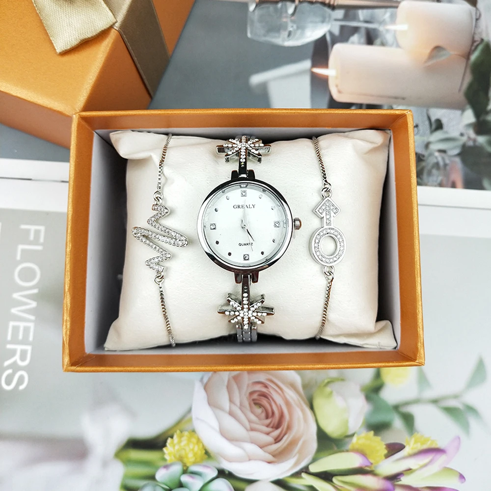cheap Top Hot Watch Woman Gift Set Fashion Wrist With Jewelry Bracelet Alloy Stars Rhinestones Band Simple Face Clock RECOMMENDED TODAY HOT OFFERS BUY Limited