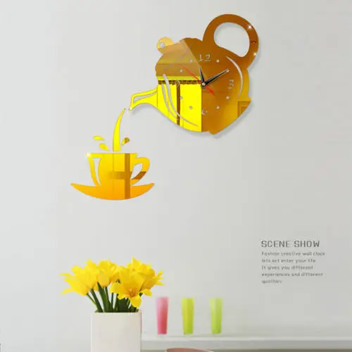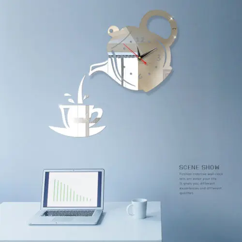 HOT OFFERS Acrylic Coffee Cups Kitchen Wall Art Mirror Clock Modern Design Home Decoration Decor Sticker For Dining Room Discount Online HOT SPECIAL PRICE Limited