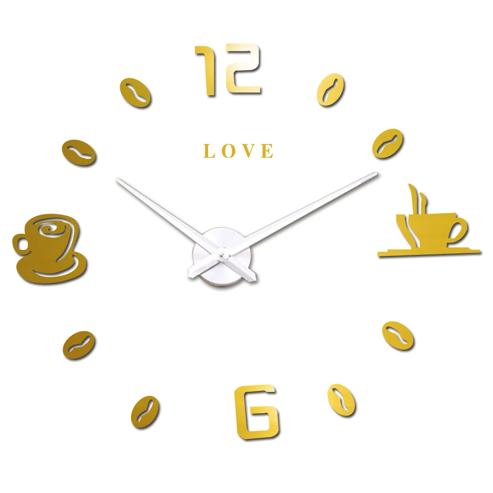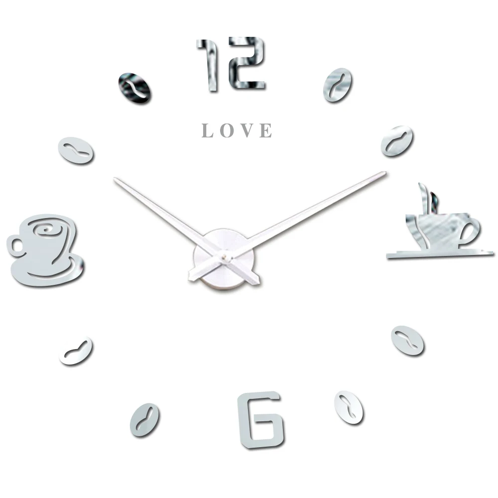 DISCOUNT definitely the Love Letters 3D DIY Silent Wall Clock Acrylic Coffee Cups Quartz Large Clock for Living Room Mirror Wall Stickers Home Decor RECOMMENDED TODAY