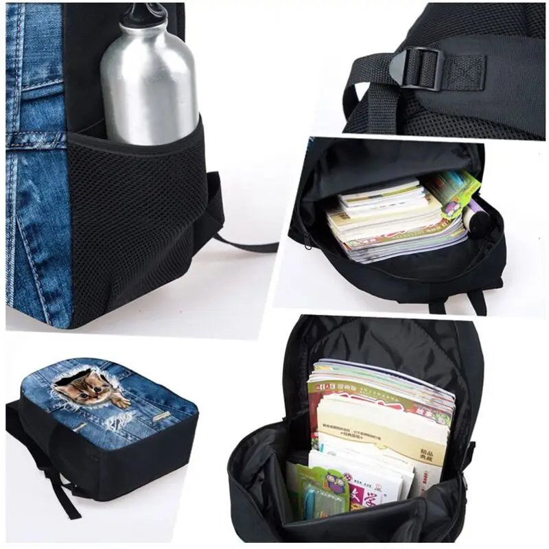 SPECIAL OFFERS BUY Now FORUDESIGNS School Bags For Teenager Girls Boys,Denim Cat Printing Children Bag,Kids 16 Inch Schoolbag Backpack Bookbag LIMITED DISCOUNT TODAY