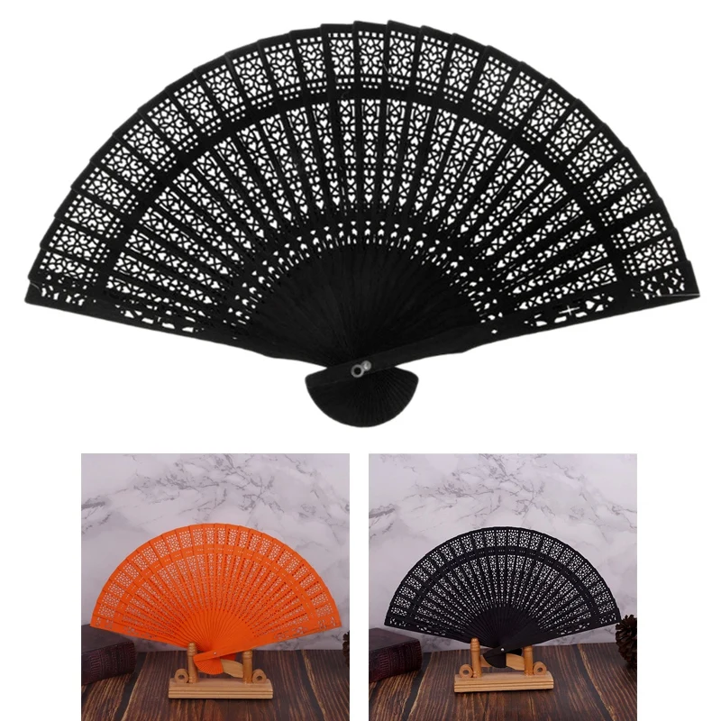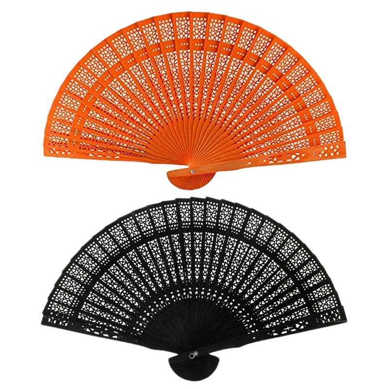 cheap 2 Pcs 8 Inch Chinese Japanese Folding Fan Original Wooden Hand Flower Bamboo Pocket For Home Decor Party Decoration , Orange RECOMMENDED TODAY BUY Now TODAY