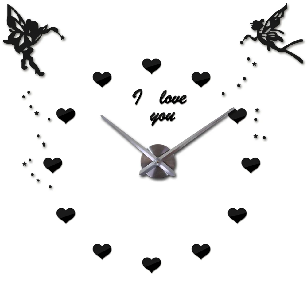 cheap 3D Large Wall Clock Modern Design Silent Decorative Big Clocks For Living Room Self Adhesive DIY Love Hearts Angel Sticker RECOMMENDED TODAY Buy BUY Limited