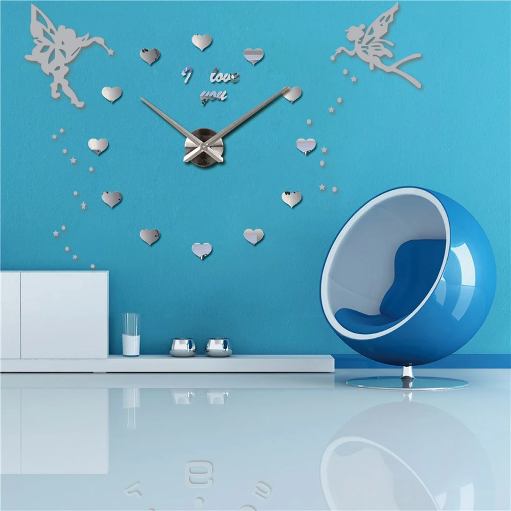DISCOUNT definitely the 3D Large Wall Clock Modern Design Silent Decorative Big Wall Clocks for Living Room Self adhesive DIY Love Hearts Angel Sticker RECOMMENDED TODAY