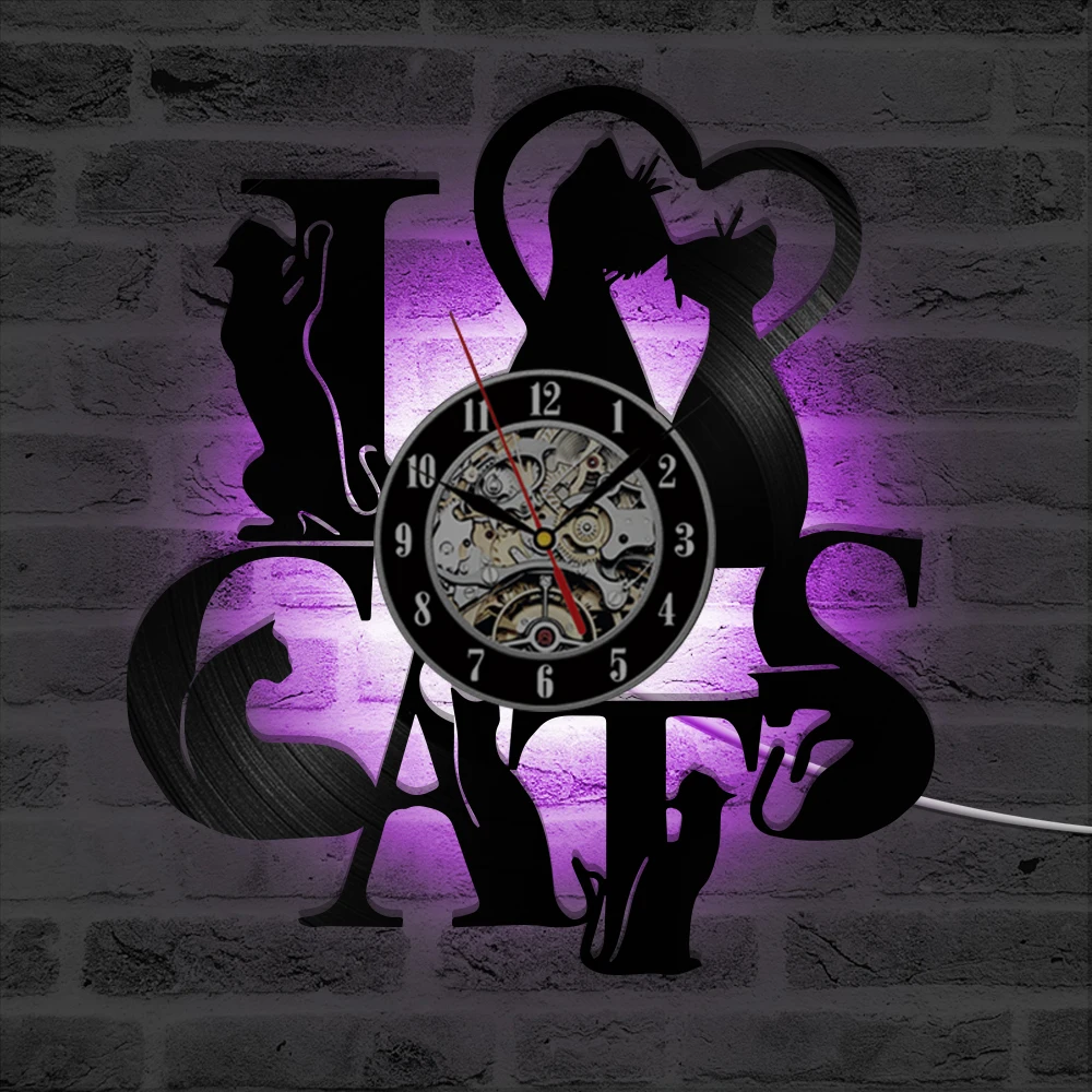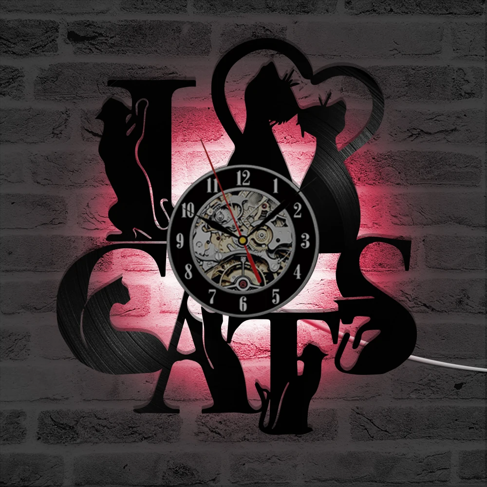 HOT OFFERS I Love Cats Wall Clock Kitten Art Unique Decorative 3d Hanging Cd Record 7 Different Around The SPECIAL Best Price BUY Now RECOMMENDED TODAY