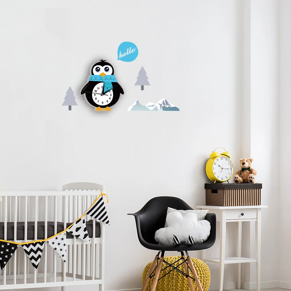 HOT OFFERS Tofok 3D Cartoon Penguin Silent Clock Ins Children Room Wall Decorative Nursery Dorm Home Hanging Time Checking Discount Best Price Cheap SPECIAL PRICE Limited