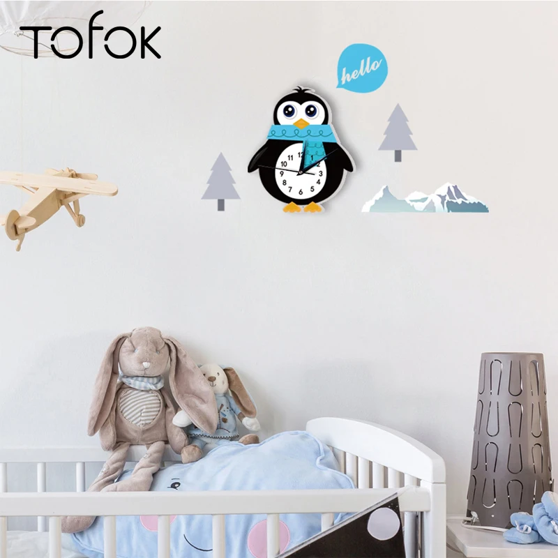 DISCOUNT definitely the Tofok 3D Cartoon Penguin Silent Clock Ins Children Room Wall Decorative Clock Nursery Dorm Home Hanging Time Checking Clock RECOMMENDED TODAY