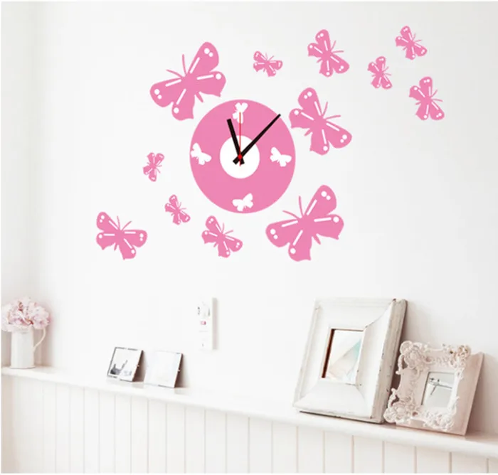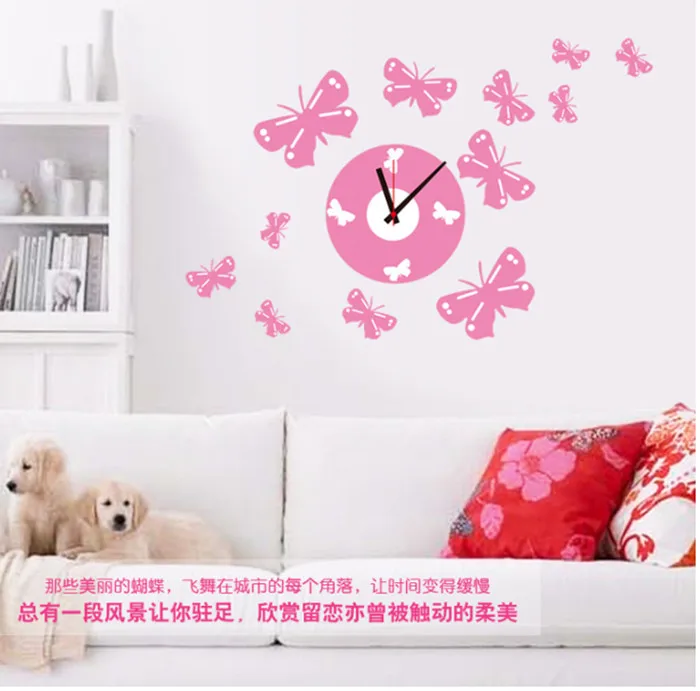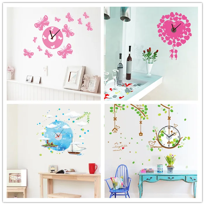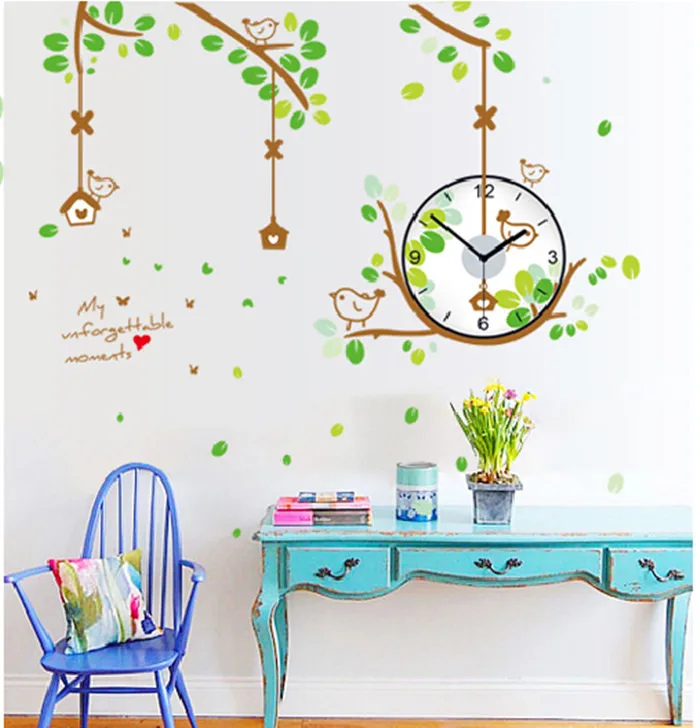 SPECIAL OFFERS 3D Clock Needle Wall Sticker Cartoon Flower Cage Pink Love Bird Design Watch Home Decoration Wall Decals Wallpaper For Bedroom Online