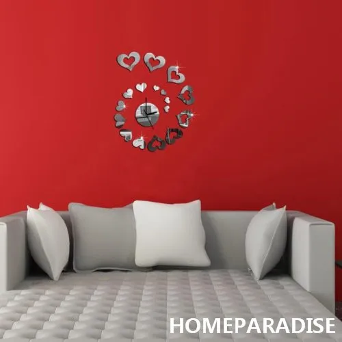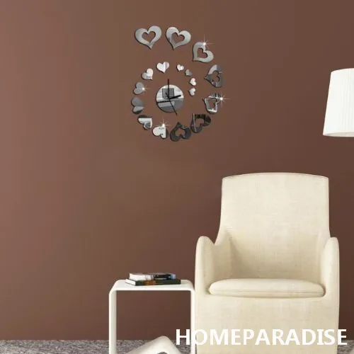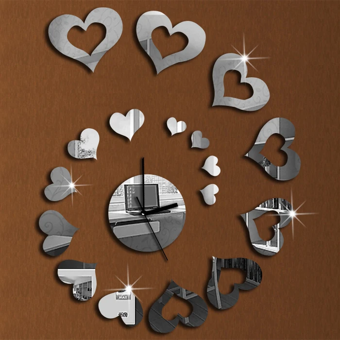 DISCOUNT my personal favorite Silver Hearts Love Heart Art Modern Luxury Design Removable 3d Crystal Mirror Wall Clock Wall Sticker Living Room Bedroom Decor RECOMMENDED TODAY
