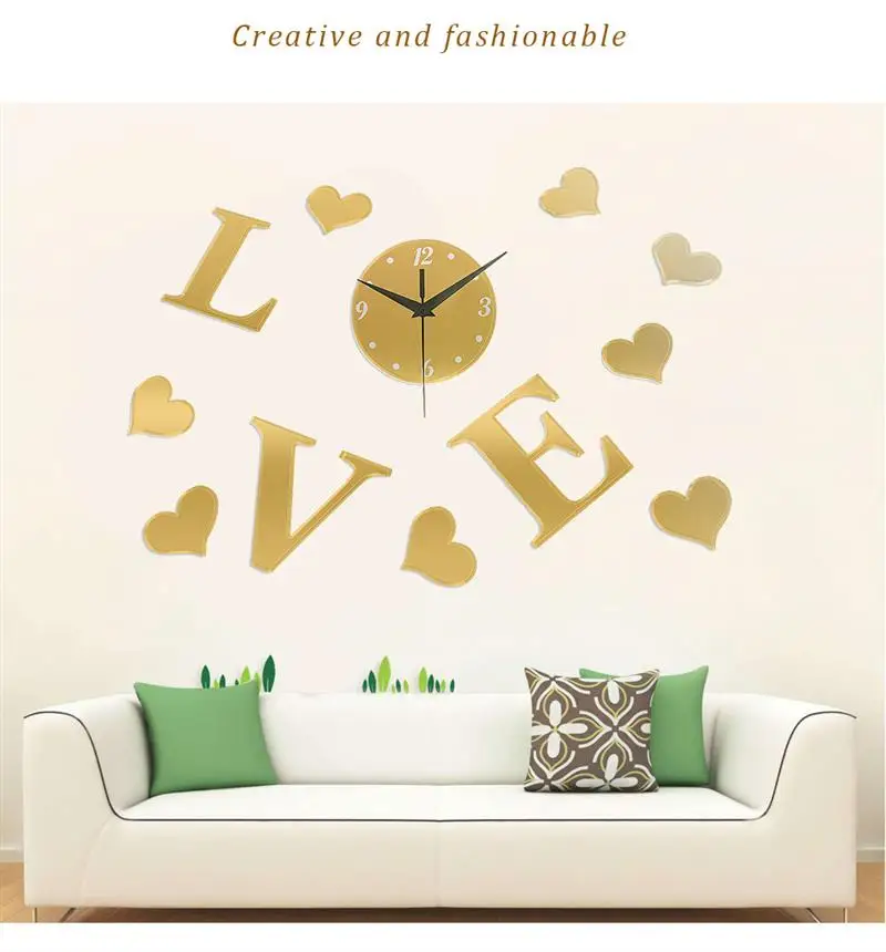 SPECIAL OFFERS Lovely Heart Shape Wall Clocks 3D Mirror Quartz Wall Clock Stickers DIY Stickers Wall Decor With 2 Colors High Quality Online